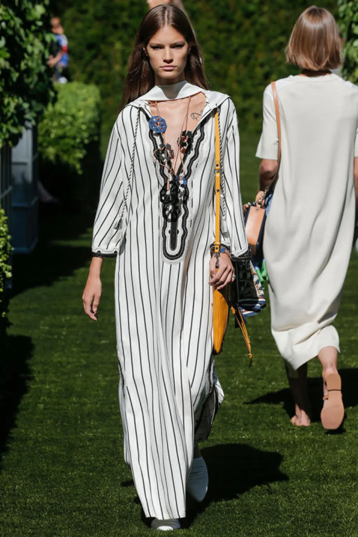كما قدمت بعض الماركات قفاطين عملية تصلح لإطلالاتك اليومية، مثل قفطان هيرمس Hermes الأبيض، والقفطان بالتقليمات الطولية من توري بورش Tory Burch.