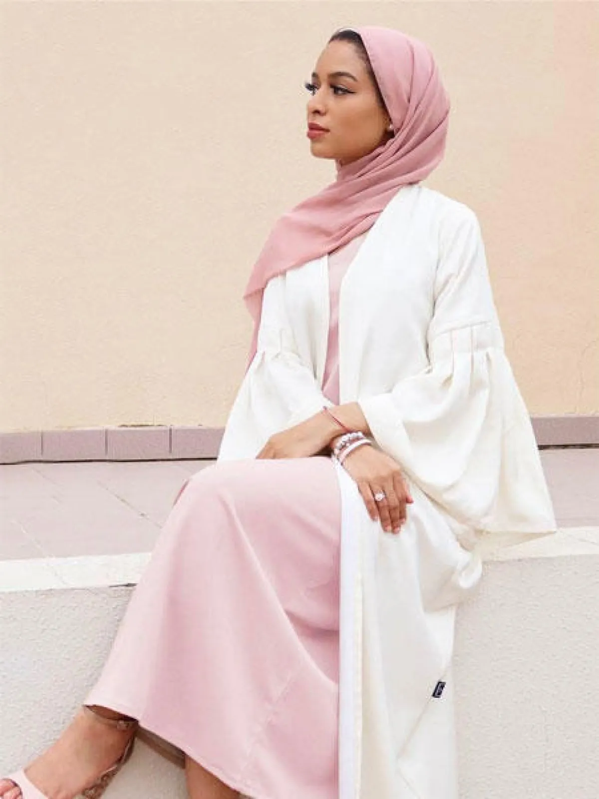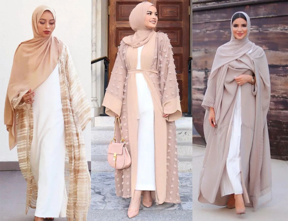 وقد اعتمدت مدونات الموضة المحجبات عبايات بقصّة مفتوحة من الأمام، مثل عباءة الفاشينيستا آسيا Ascia، بصيحة الألوان المتدرجة Ombre، والتي نسقت معها أزياء وحجاباً باللون الأبيض وحقيبة باللون البيج.