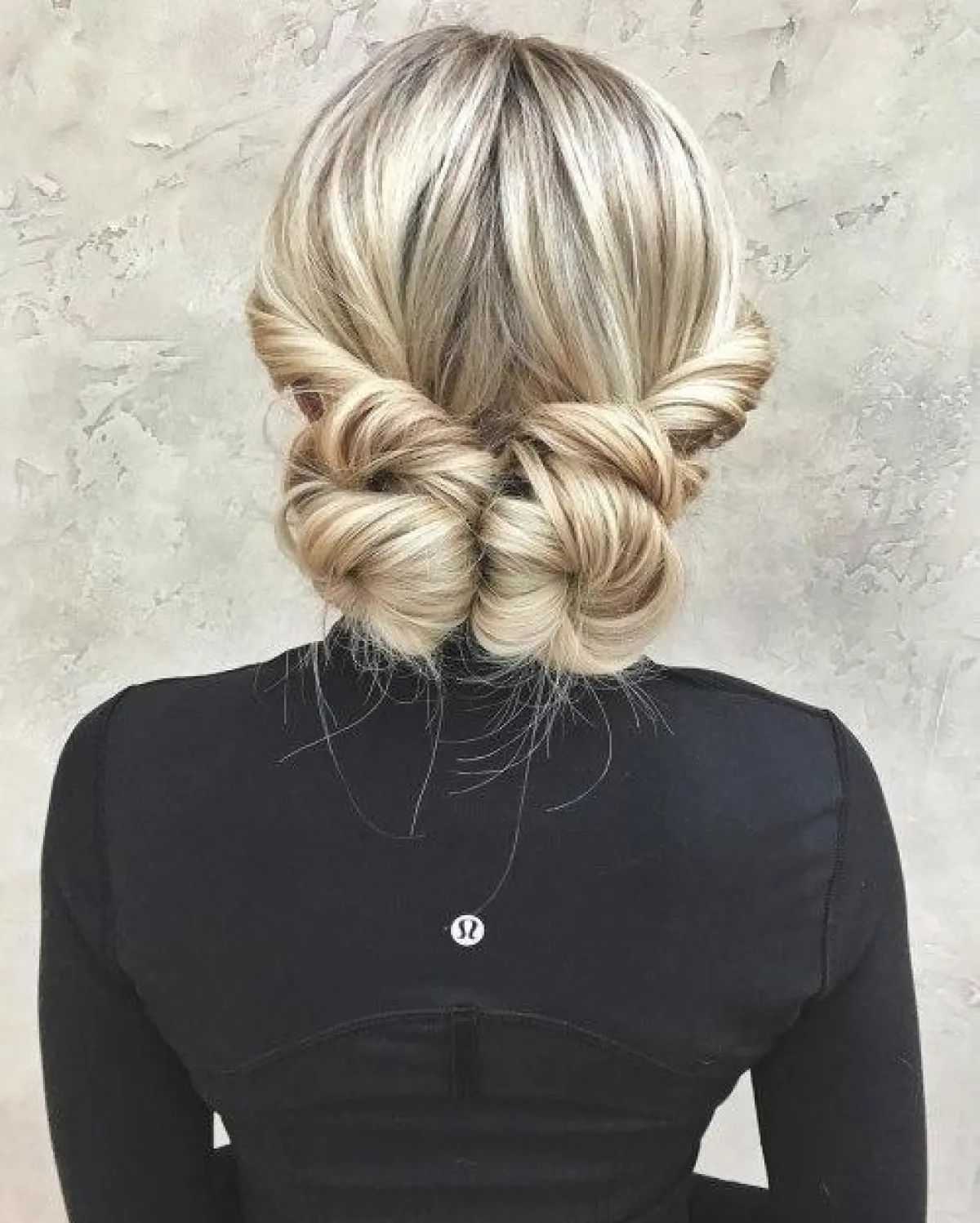 4- كعكتان متوازيتان: من التسريحات العصرية التي تفيض بالانوثة. يكفي ان يقسم الشعر قسمين، وان تلف الكعكة على مستوى منخفض من الجهتين اليمنى واليسرى.