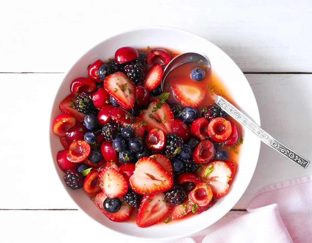1- الفاكهة الحمراء والبرتقالية: خلال الصيف من المهم التركيز على الفاكهة المشبعة بالسوائل من اجل الحفاظ على رطوبة البشرة وبالتالي ليونتها ومظهرها الصحي. لذلك، تناول الفاكهة يشكل الطريقة الاهم من اجل الحصول على الانتعاش المطلوب. أما الانواع المطلوب التركيز عليها أكثر من سواها، فهي التفاح بلونيه الاحمر والاخضر اذ يحتوي على نسبة عالية من المياه اضافة الى انواع التوت، سواء الابيض او الاحمر او الاسود، والفراولة. فهذه الفاكهة تحتوي على البيتا - كاروتين التي تحمي البشرة من مضار اشعة الشمس. كذلك يعتبر البطيخ الاحمر مصدرا اساسيا لاسترداد الرطوبة المفقودة.