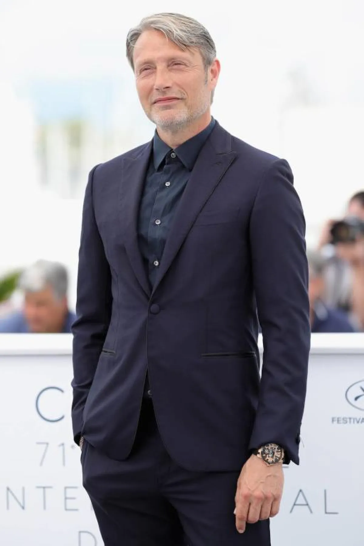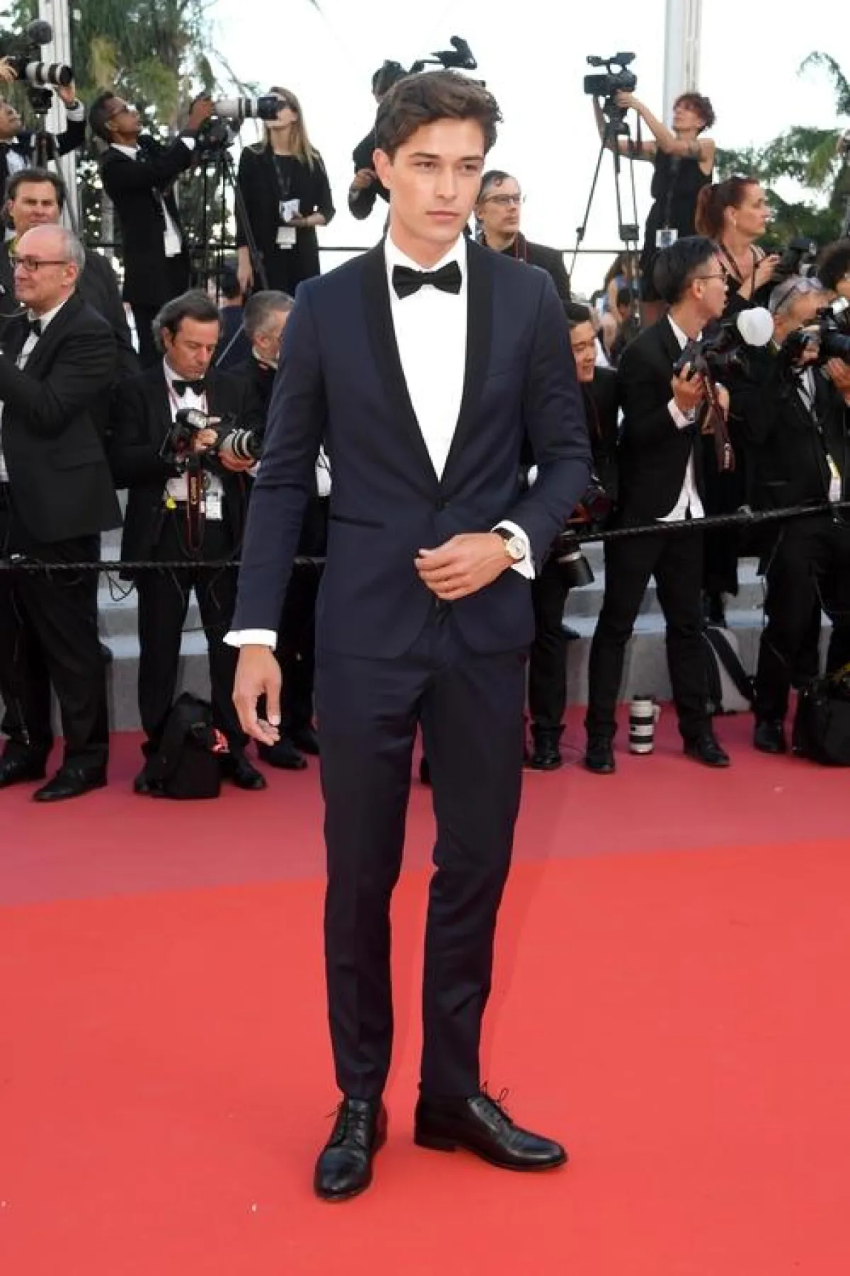 بدا الممثل الوسيم Javier Bardem جافيير بارديم لافتًا، باختياره بدلة رسمية أنيقة باللون الكحلي الداكن مع درجة لامعة خفيفة في خامة البلايزر، ورابطة عنق الفيونكة، والقميص الأبيض الكلاسيكي.