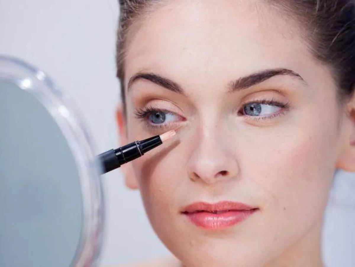 - ضعي الكونسيلر تحت العين على شكل مثلث، وابدئي بتوزيعه بأطراف أصابعكِ، أو بفرشاة الكونسيلر الخاصة.