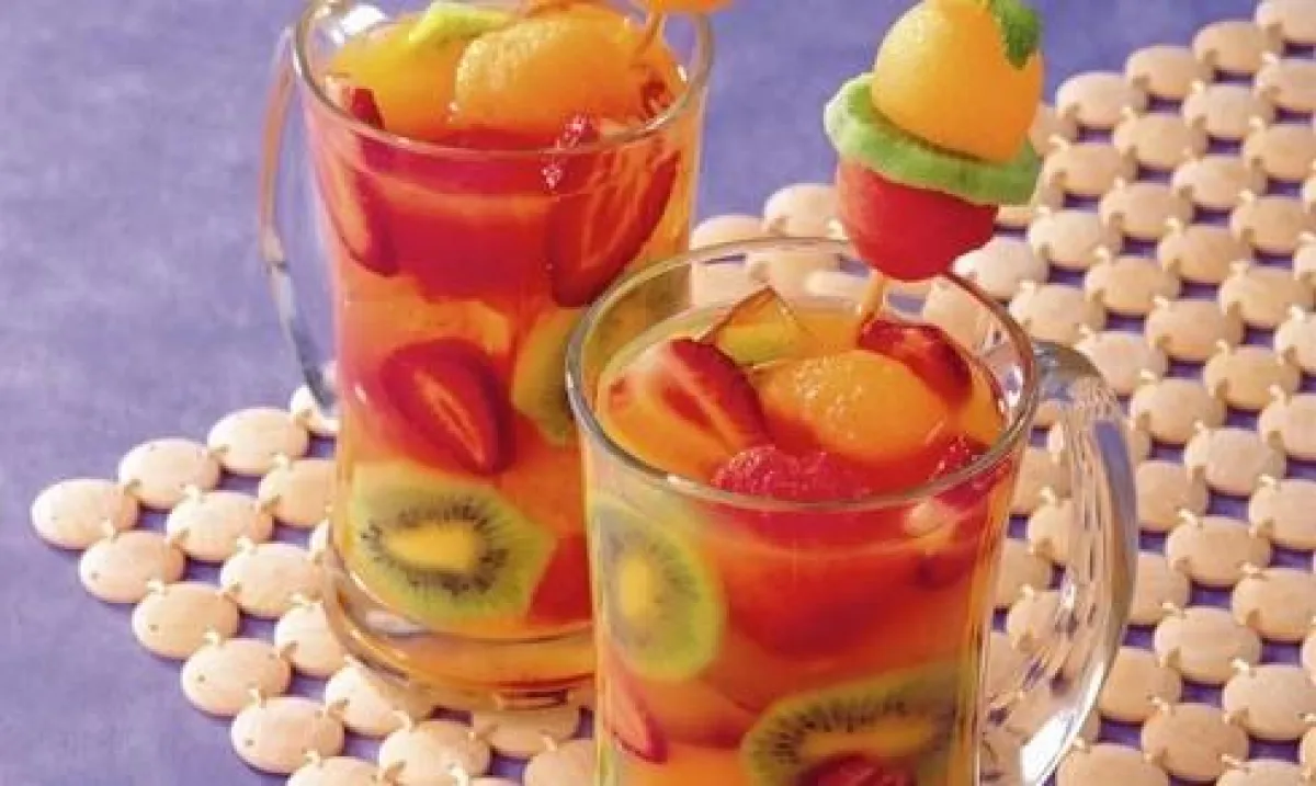 2- يسكب هذا الشراب في وعاء زجاجي كبير، وتضاف إليه شرائح الفاكهة.
