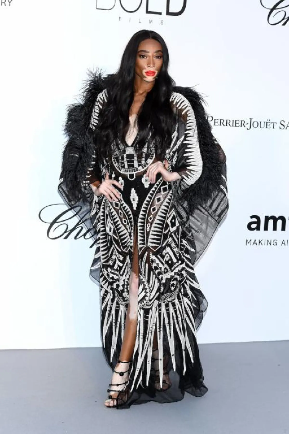 اطلالة “ويني هارلو” Winnie Harlow في فستان من زهير مراد Zuhair Murad اختارته من مجموعة الهوت كوتور لموسم ربيع وصيف 2018 كانت مبتكرة ولافتة غير أنها بدت مبالغ بها وخاصة من ناحية الأكتاف وأحمر الشفاه القوي الذي اعتمدته.