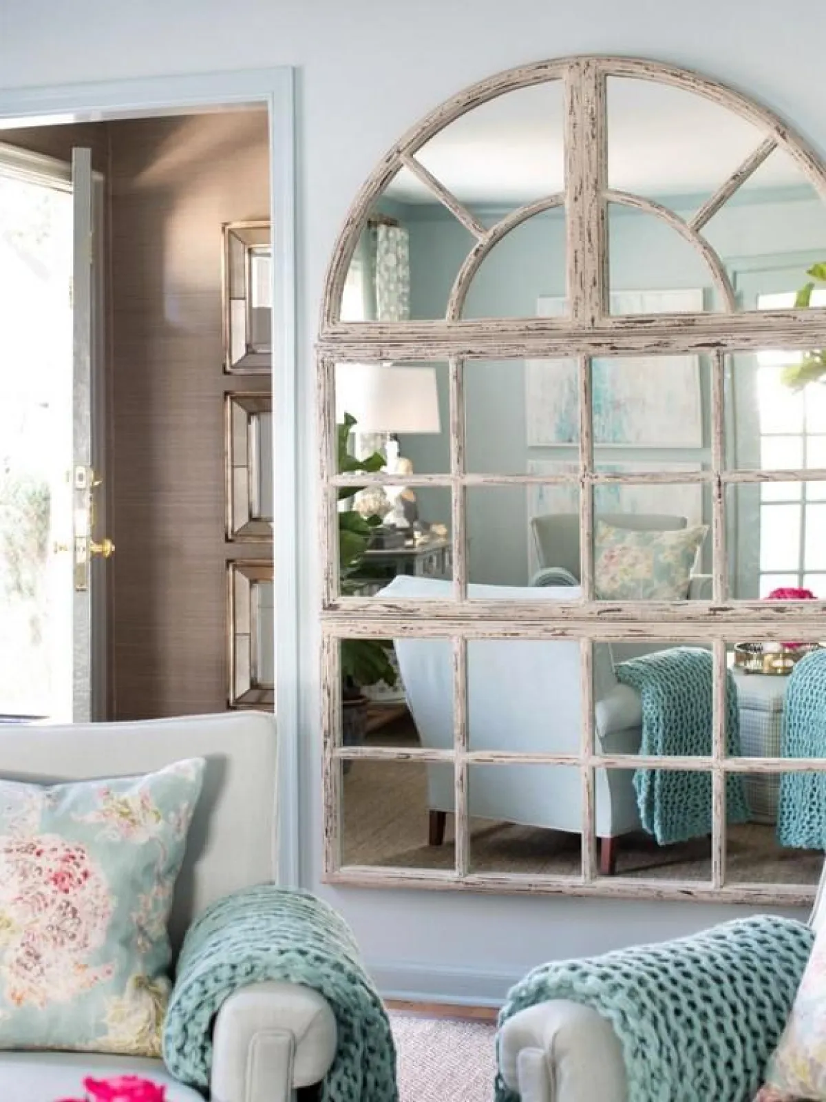 6. المرآة تمنح المدخل مزيدًا من الاتساع وتزيد من الإضاءة فيه.
