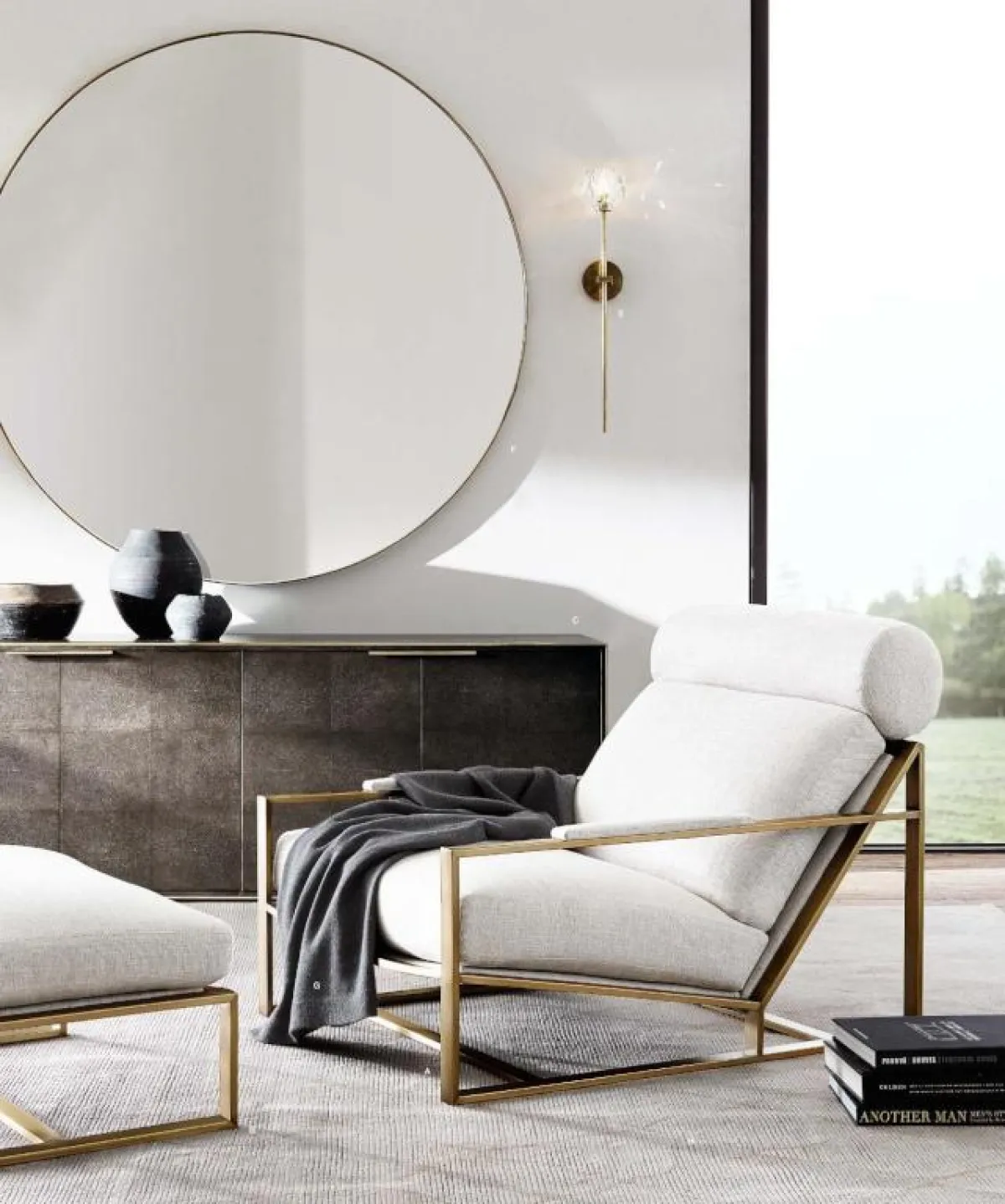 14. تُستخدم المرآة كبيرة الحجم كقطعة مركزيَّة لتقسيم الغرفة.