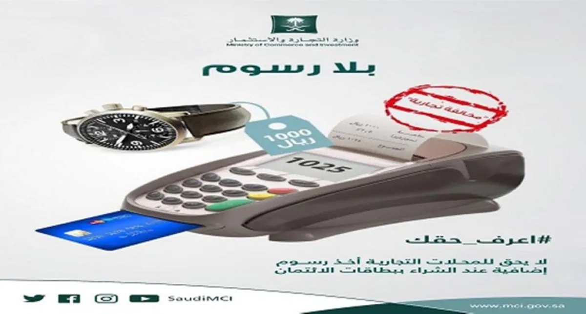 أكدت وزارة التجارة والاستثمار على أنه لا يحق للمحلات التجارية أخذ رسوم إضافية عند الشراء بـ "بطاقات الائتمان".
