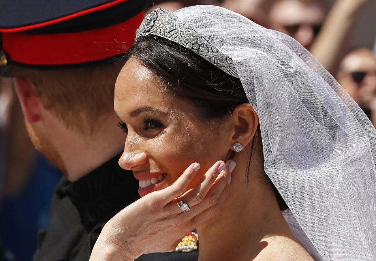 وكان لافتاً خاتم الألماس الأزرق الذي أهداه هاري لماركل، والذي يعود للأميرة الراحلة ديانا.