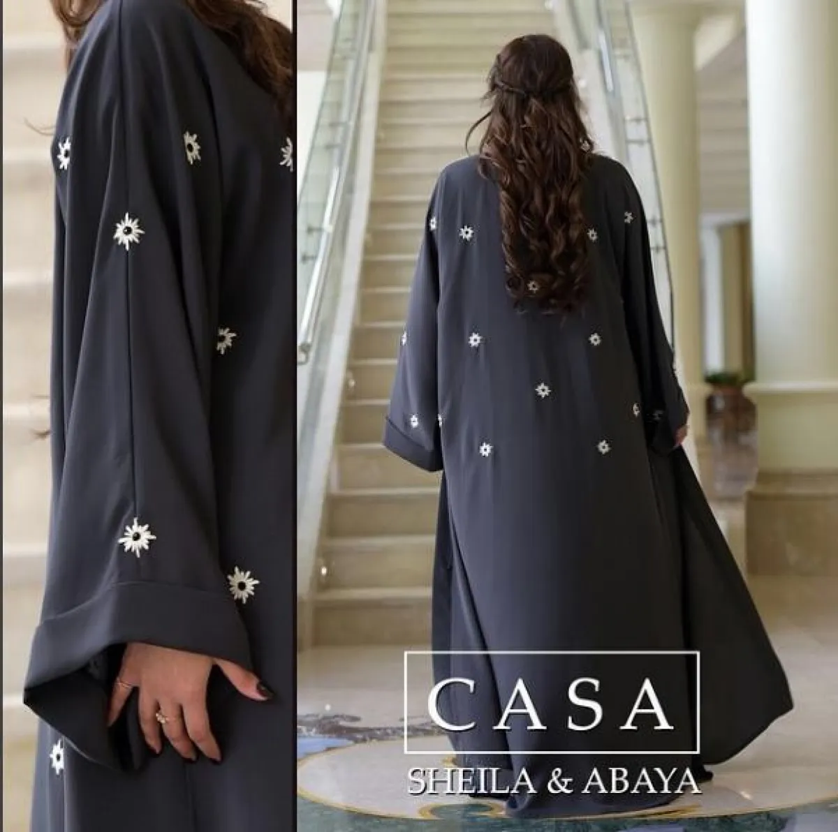 لفتتنا هذه العباية بتطريزات الورود باللون الفضي المميز، من تصميم Jilbab Nr جلباب إن آر، مع الطرحة الطويلة، والحذاء الرياضي الذي يناسب ذهابكِ إلى المسجد خاصًة إن كان مكان الصلاة بعيدًا عن البيت.