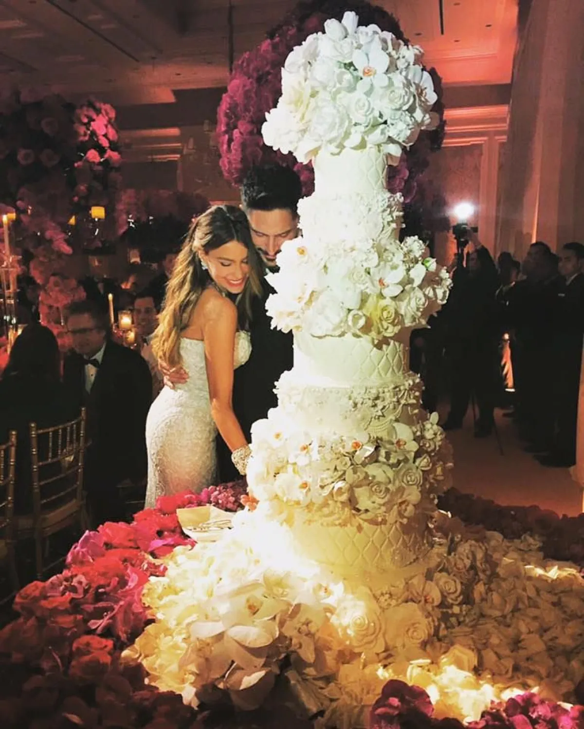 إذا كنتِ ممن يحبون الورود البيضاء، فحتمًا ستُعجبكِ كعكة زفاف الثنائي صوفيا فيرغارا وجو مانغانيلو، التي تميزت بالأناقة والجمال وملاءمة أجواء الحفل المرحة، ولكنها لم تكن ضخمة أو عالية للغاية فقط مكونة من 5 أدوار.
