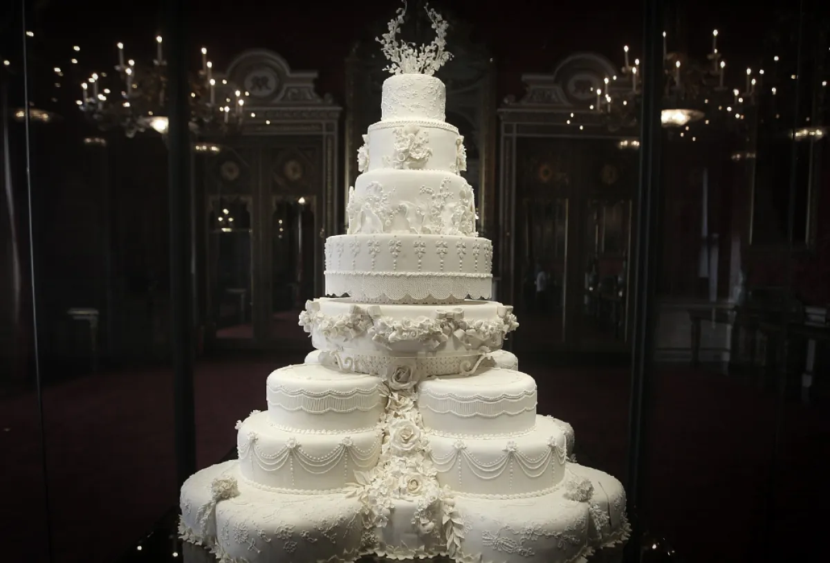 لأجواء الزفاف الأسطورية، لفتنا كعكة زفاف الأمير ويليام والدوقة كيت ميدلتون، بكعكة زفاف مختلفة التصميم، من الأسفل عبار عن 3 أدوار مضاعفة بشكل عرضي بالتورتة كأساس، ثم 5 أدوار من الكعك، مزينة بالورود.