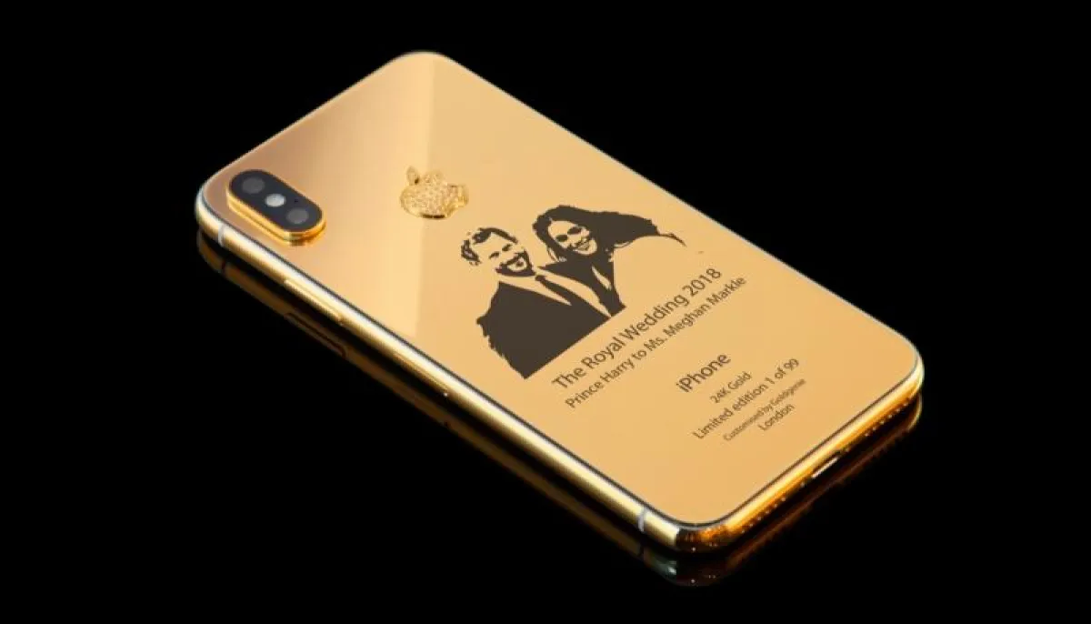 وجهزت الشركة 99 نسخة من "آيفون X" الذهبي الجديد، والذي تم دعمه برقائق ذهب من عيار 24، وتم نقش صورة العروسين في الجهة الخلفية للهاتف، ونقش عبارة "الزفاف الملكي 2018".