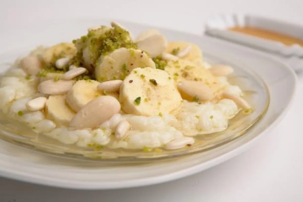 يُزيّن بالموز والعسل قبل الأكل بقليل.