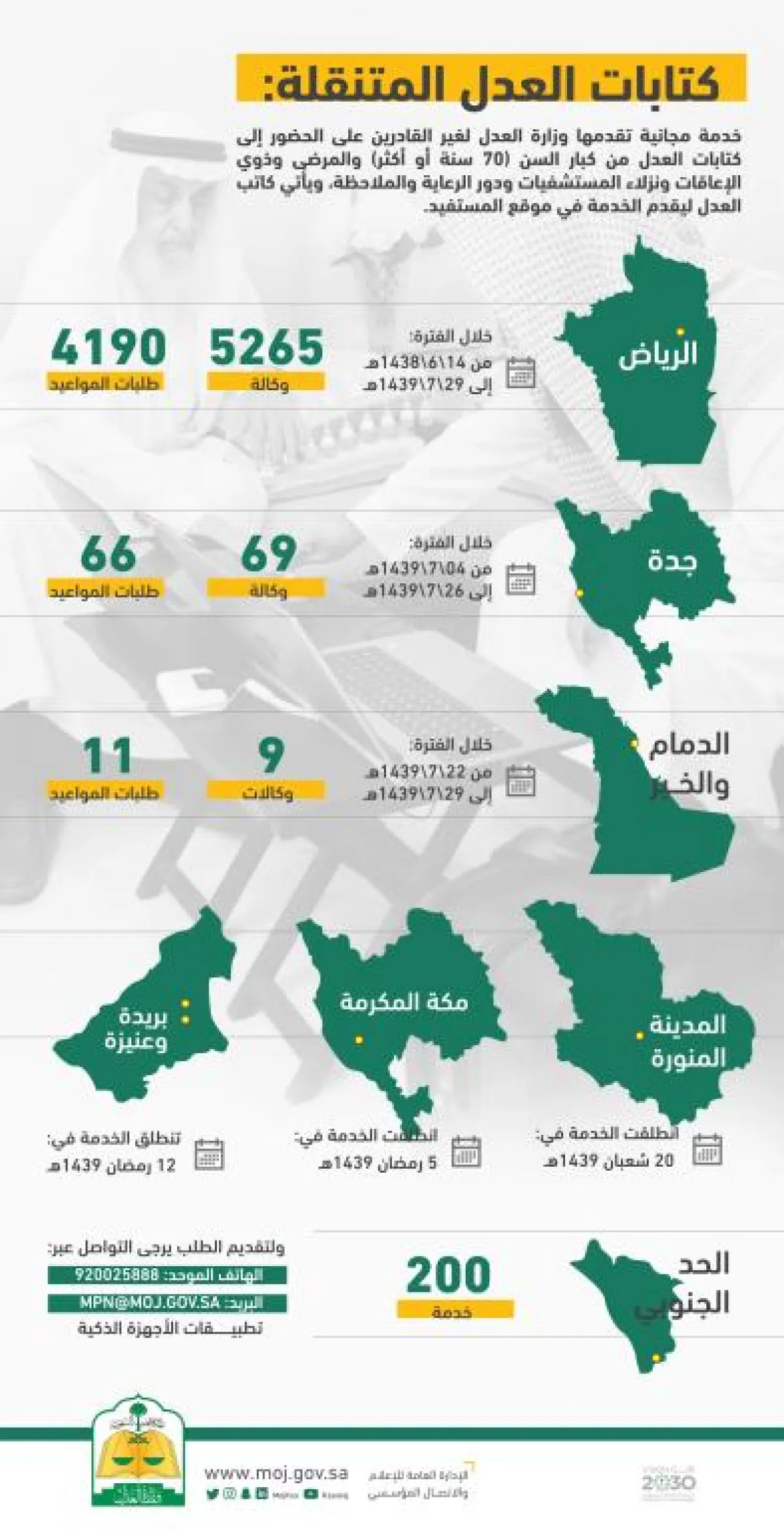 وتقدر إحصاءات الخدمات التي قُدمت من خلال كتابات العدل المتنقلة منذ إطلاقها بـ6187 خدمة في عموم مناطق المملكة.