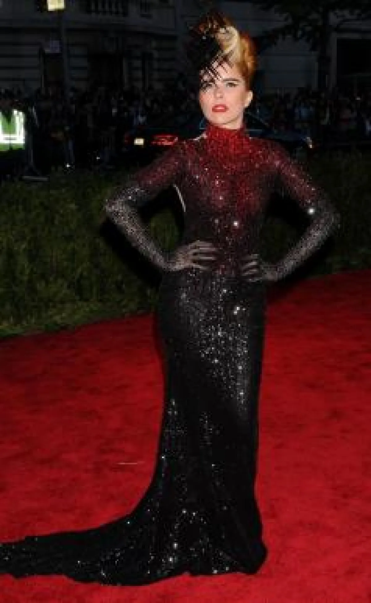 في حلقة البارحة من برنامج Arab Idol اختارت النجمة أحلام أن تطل بإطلالة جريئة ومتجددة على طريقة نجمات الـMet Gala حيث ارتدت فستاناً برّاقاً بقفازات دانتيل موصولة بأكمامه, حمل هذا الفستان توقيع مصممها المفضل توني يعقوب وقد ظهر في مجموعة الأزياء الراقية لربيع وصيف 2013.