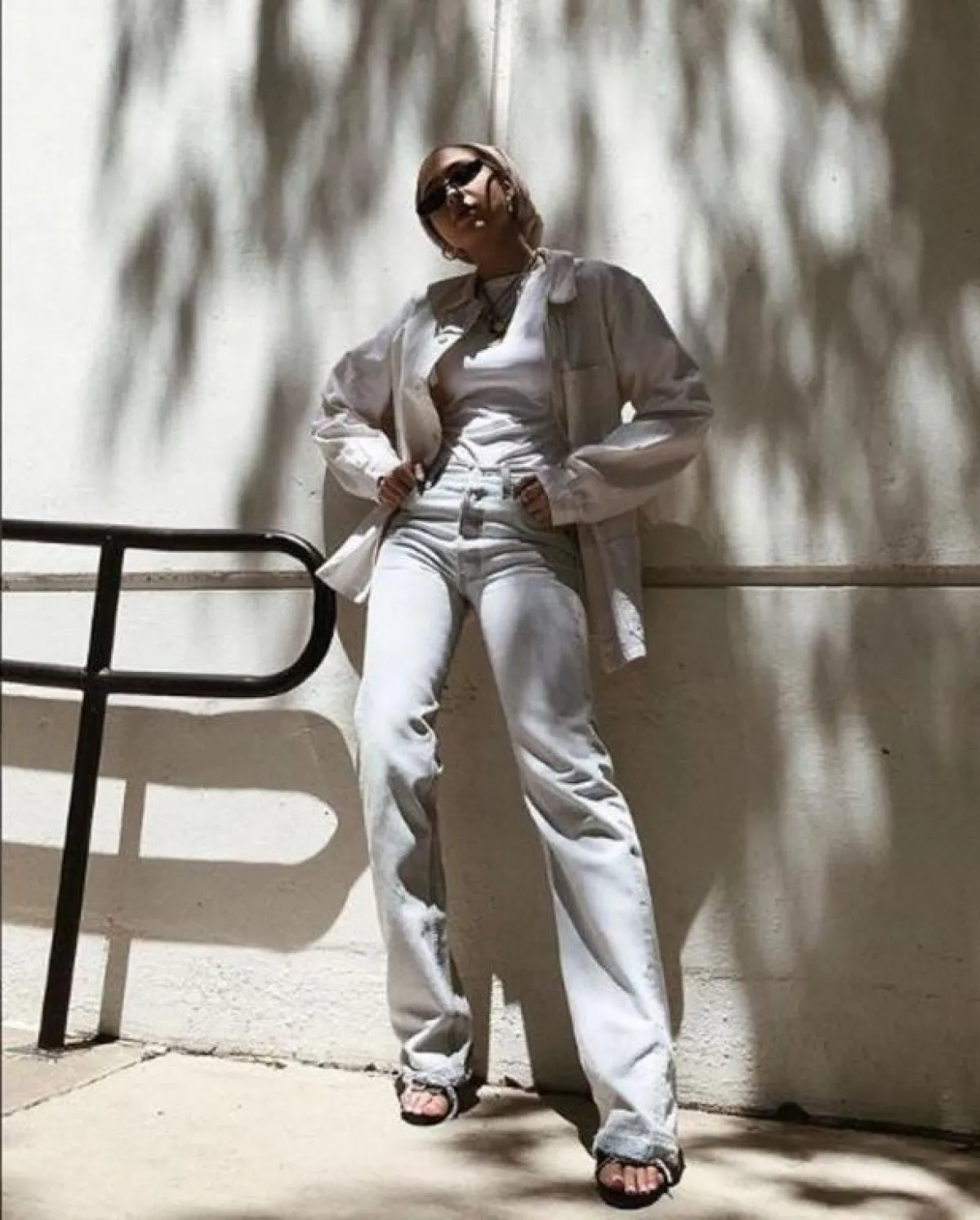 الإطلالات الحيادية من الأساليب المفضلة لدى ماريا، تعتمدها مع الجينز الفاتح، والقميص المفتوح باللون الكريمي، وتوب باللون الأبيض، مع إكسسوارات ذهبية لإطلالة أنيقة وعصرية، تناسب مشاوير النهار.