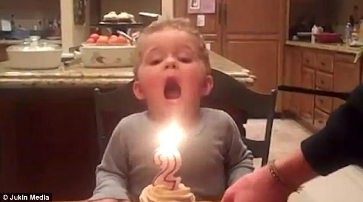 وقبل أن ينتهي الضيوف من أغنية عيد الميلاد، أخذ «سوير» بالنفخ في الشمعة، لكنها رفضت الانطفاء، وحاول الطفل مرارًا حتى يئس منها، فقرر أن يأكل الكعكة، ولا تزال الشمعة مشتعلة، بينما أخذ ضيوفه في الضحك.
