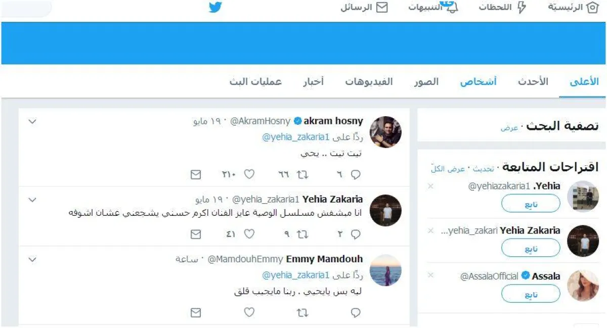 وجاءت تغريدات متابعي الفنّان أكرم حسني والشاب يحيى زكريا معجبة بما فعله أكرم، ومثنية على تواصله المباشر معهم، وعلى أسلوب الساخر والكوميدي.