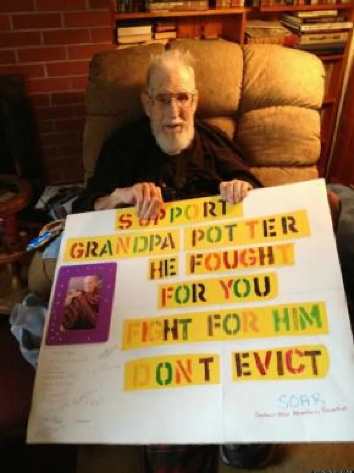 وكانت جانيس قد حصلت على توكيل عام بأملاك والديها قبل وفاة والدتها، وبه استطاعت تحويل ملكيَّة المنزل لاسمها الخاص من دون إخبار والدها جون بوتر. وقد اكتشفت عمليَّة التحويل في عام 2010 عندما حاولت الابنة إعلان أنَّ أباها جون غير مؤهل عقلياً وإرساله لدار العجزة ما دفع الوالد لرفع دعوى للحصول على الحقوق لاستعادة منزله، حيث من غير القانوني لشخص لديه توكيل عام أن ينقل الأصول التي يشرف عليها لحسابه، وقد ربح جون الدعوى، لكنَّه خسر في الاستئناف العام، ما دفع جانيس لإرسال إشعار الإخلاء لوالدها في محاولة لإخراجه من المنزل الذي عاش فيه لمدة 56 سنة.