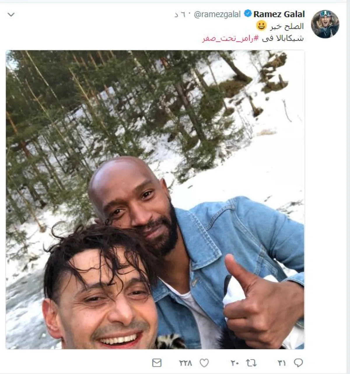 بادر الفنان رامز جلال، إلى تقديم أوّل تعليق على ما شهدته حلقة الأمس من برنامج "رامز تحت الصفر" من غضب وألفاظ خارجة بعد اكتشاف الضيف لاعب كرة القدم شيكابالا المقلب مبكراً، ونشر صورة تجمعهما وعقب عليها قائلاً: الصلح خير.