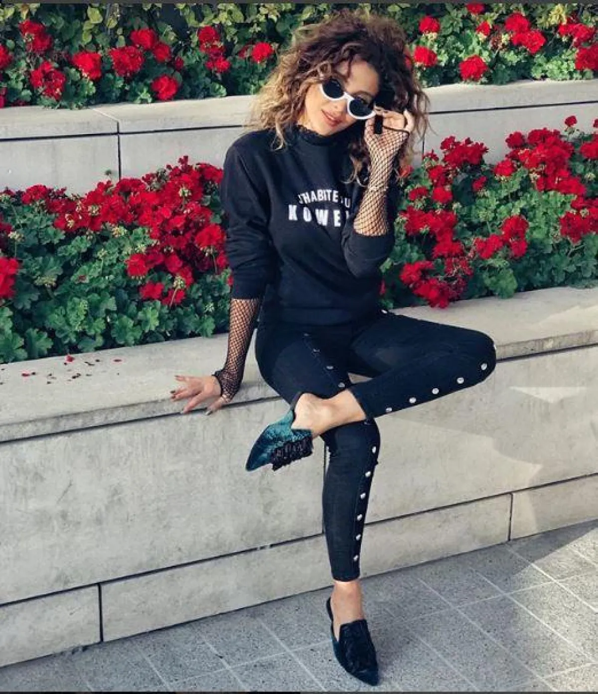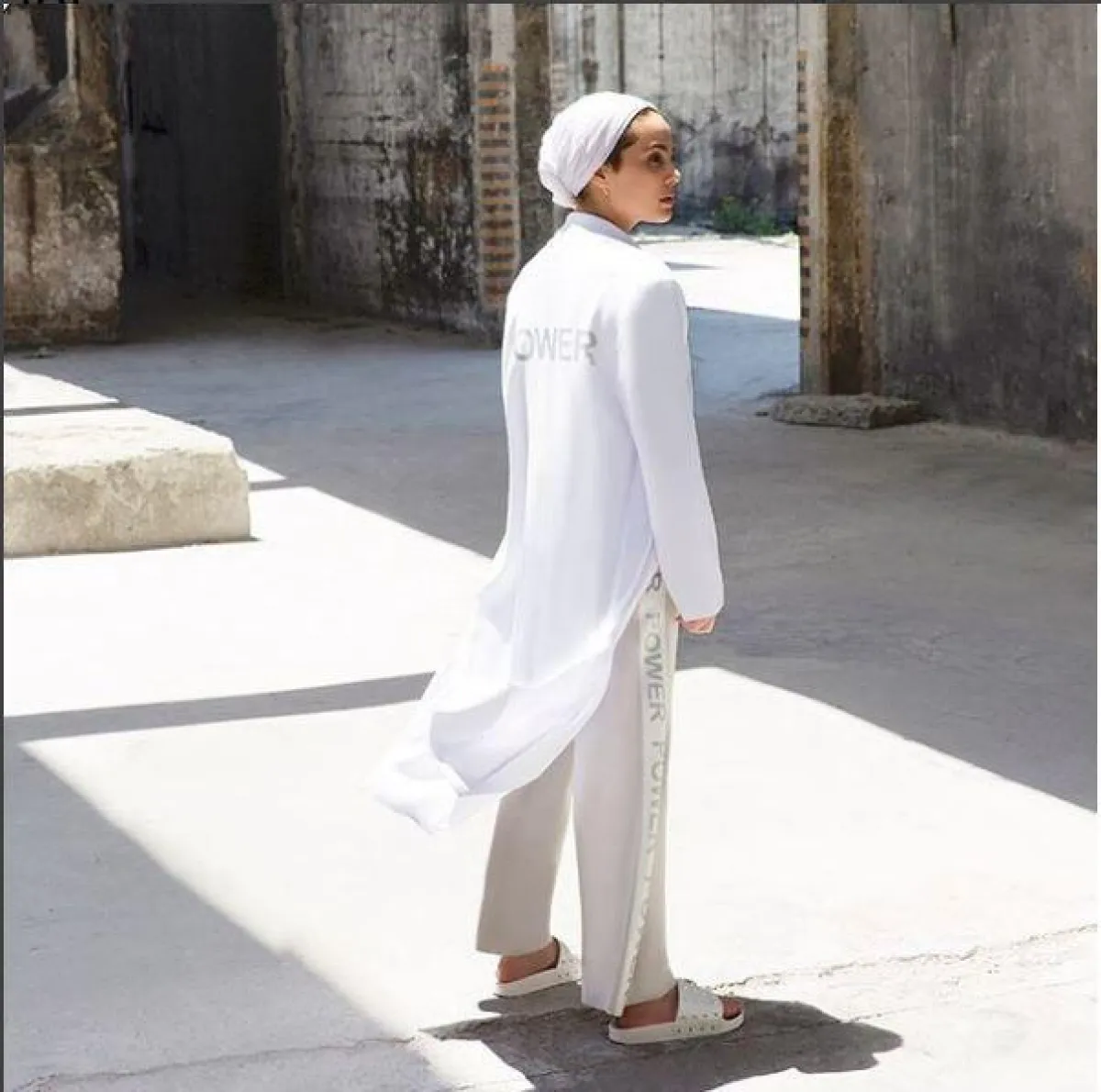 لفتتنا أيضًا هذه الإطلالة بالسليبر المفتوح مع الدبابيس المعدنية، من الفاشنيستا آسيا، وارتدت معه بنطلونًا أبيض واسعًا وقميصًا طويلًا بسيطًا، بخامة القطن.