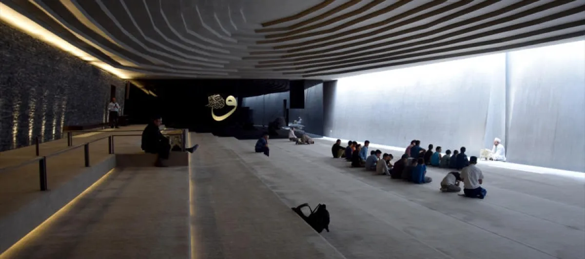 وتضيف الأناضول، أن "أروتال" تجنب تماماً استخدام أي دهانات كيميائية، واكتفى بأحجار البناء البازلتية، وأحجار الـ"أردواز" السوداء، التي غمرت مساحة المسجد بأجواء روحانية كبيرة، كما أنه قد تم تصميم الجدران الخارجية للمسجد على هيئة توحي بأن هناك حد فاصل بين العالم الخارجي المزدحم والمليء بالضجة وأمور الدنيا، وبين أجواء الخشوع والطمأنينة والهدوء والسلام داخل المسجد، بالإضافة إلى أن درجات السلم المتجهة إلى الأسفل توحي للمصلي بأنه ترك الدنيا وراء ظهره، في طريقه للقاء خالقه.