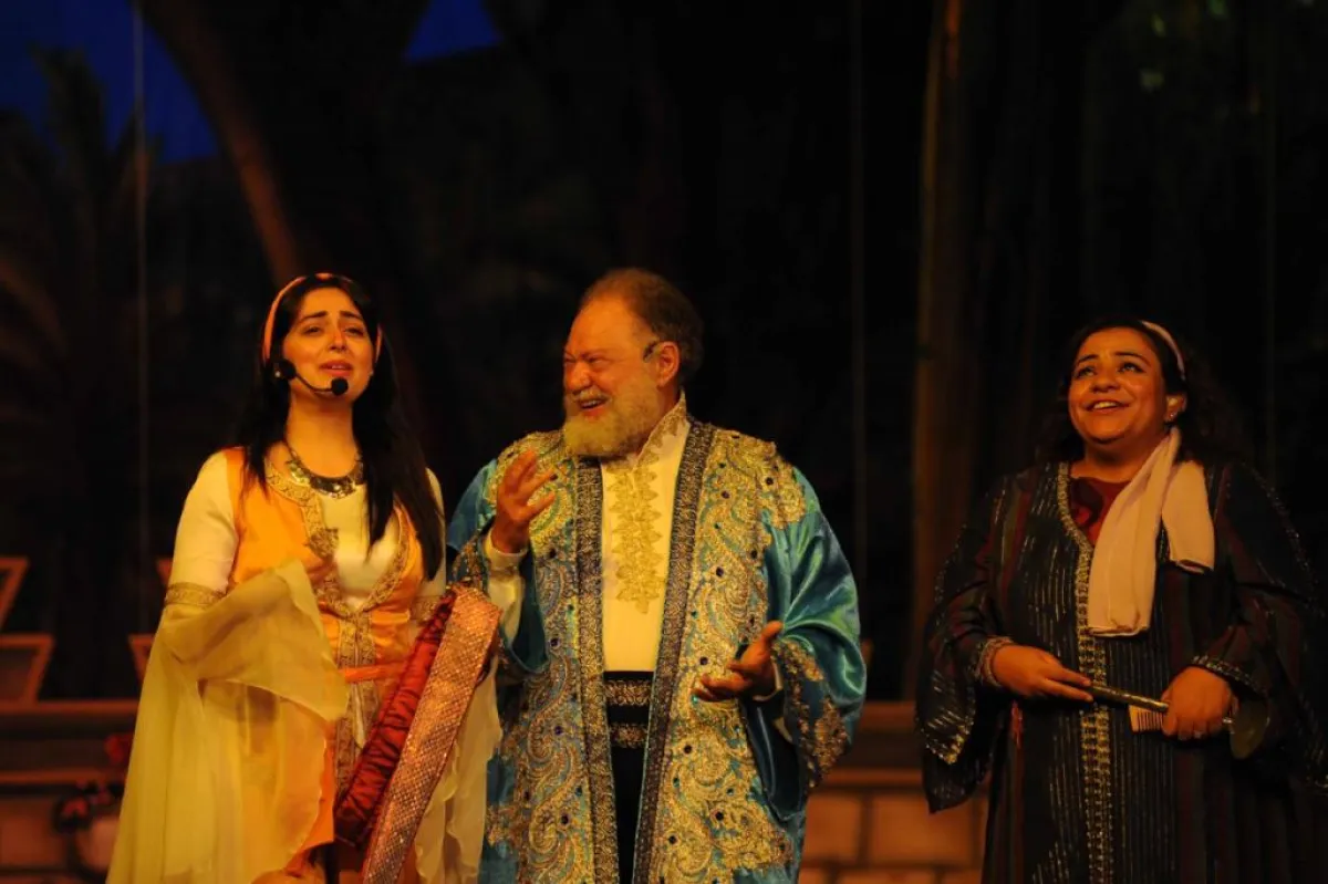 يذكر أنّ مسرحية "ليلة من ألف ليلة" من إنتاج فرقة المسرح القومي التابعة للبيت الفني للمسرح، من تأليف الشاعر الراحل بيرم التونسي، بطولة يحيى الفخراني، لطفى لبيب، هبه مجدى، سلمى غريب، وليد فواز، والمطرب محمد محسن ونجوم المسرح القومي، موسيقى وألحان أحمد صدقي، ديكور محمد الغرباوى، أزياء نعيمة العجمي، تنفيذ موسيقى يحيى الموجي، استعراضات مجدى صابر، إخراج محسن حلمي.