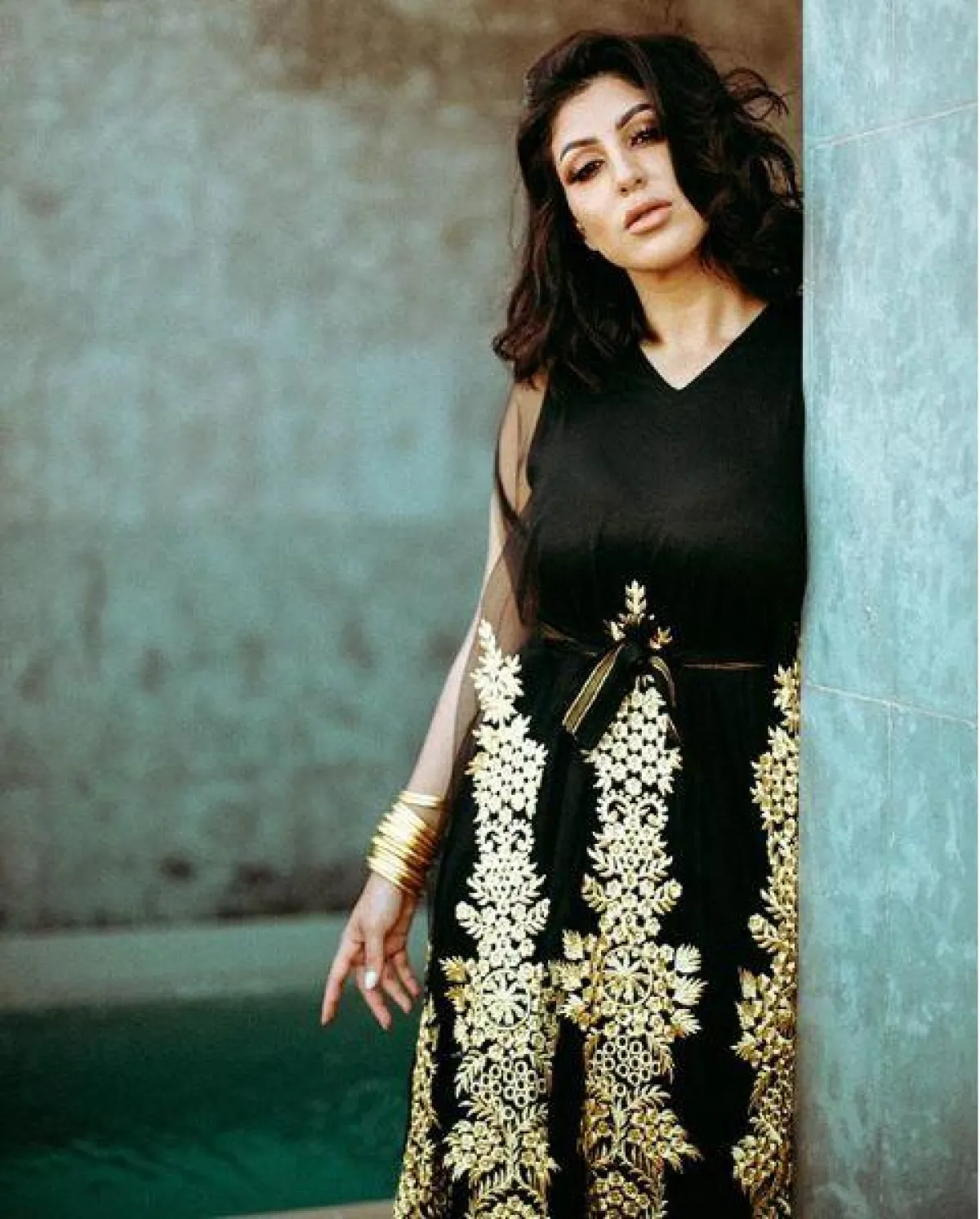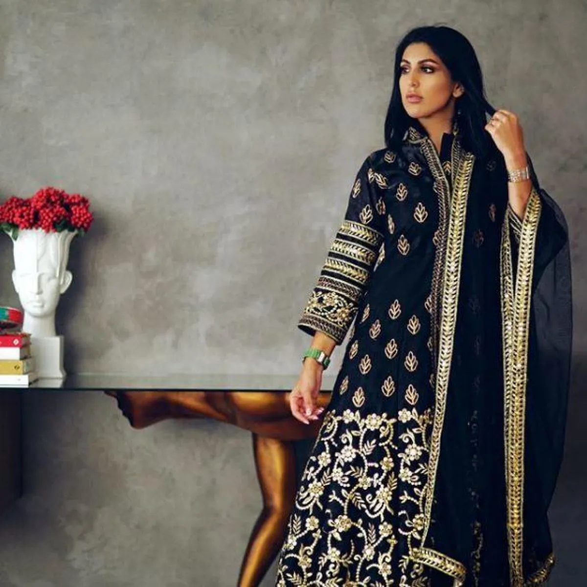 لفتتنا إطلالات مدونة الموضة الكويتية دانا الطويرش بـ عباية مخملية ناعمة باللون الأسود مع تطريزات ذهبية ناعمة، وطبقة من التول المهدول.