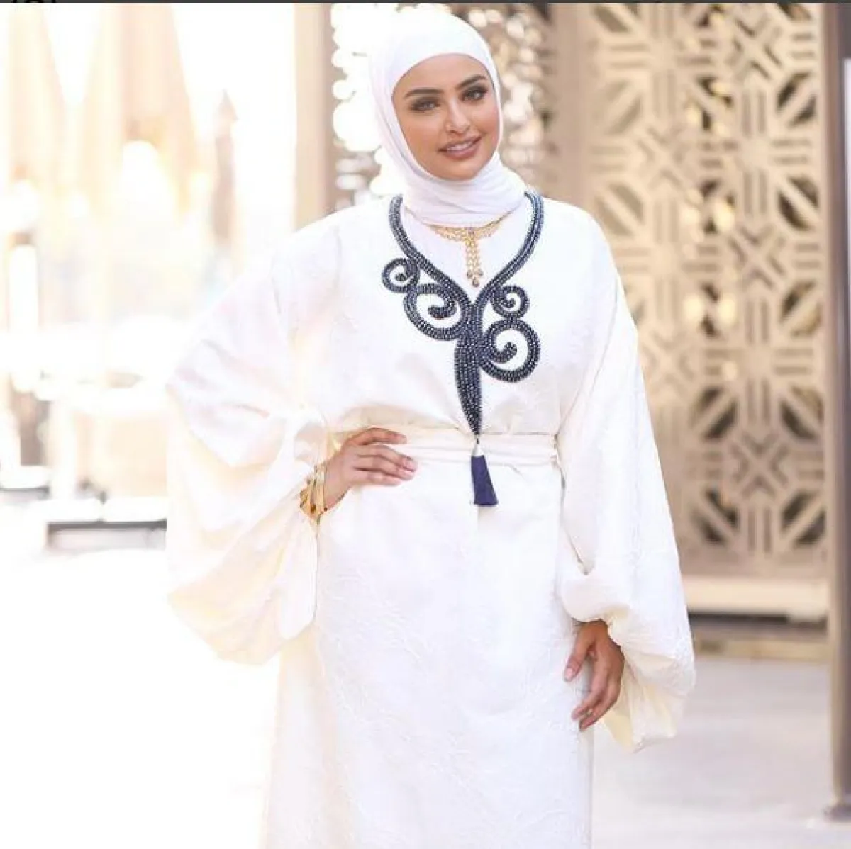 ظهرت الفاشنيستا آسيا بعباية باللون الأبيض، تناسب أوقات السهرات واللقاءات الرمضانية، مع قطعة إكسسوارات من الشراشيب مهدولة على الأكتاف باللون الأسود لإطلالة أنيقة جذابة.