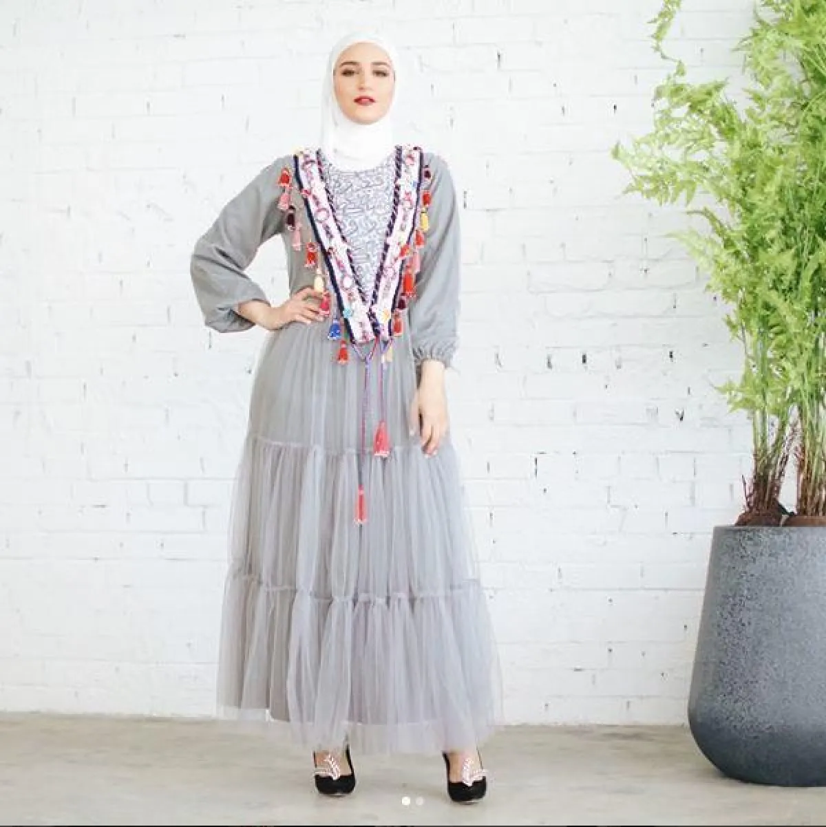 كما ظهرت دانا بقفطان أنيق باللون الأسود مع رسومات الورود الذهبية، بتصميم أقرب إلى الفستان يناسب الأجواء الرمضانية. وفي إطلالة متجددة، اختارت عباية بألوان رمادية هادئة مع سكارف وضعته على كتفيها، واختارت عقداً كلاسيكياً كبيراً.