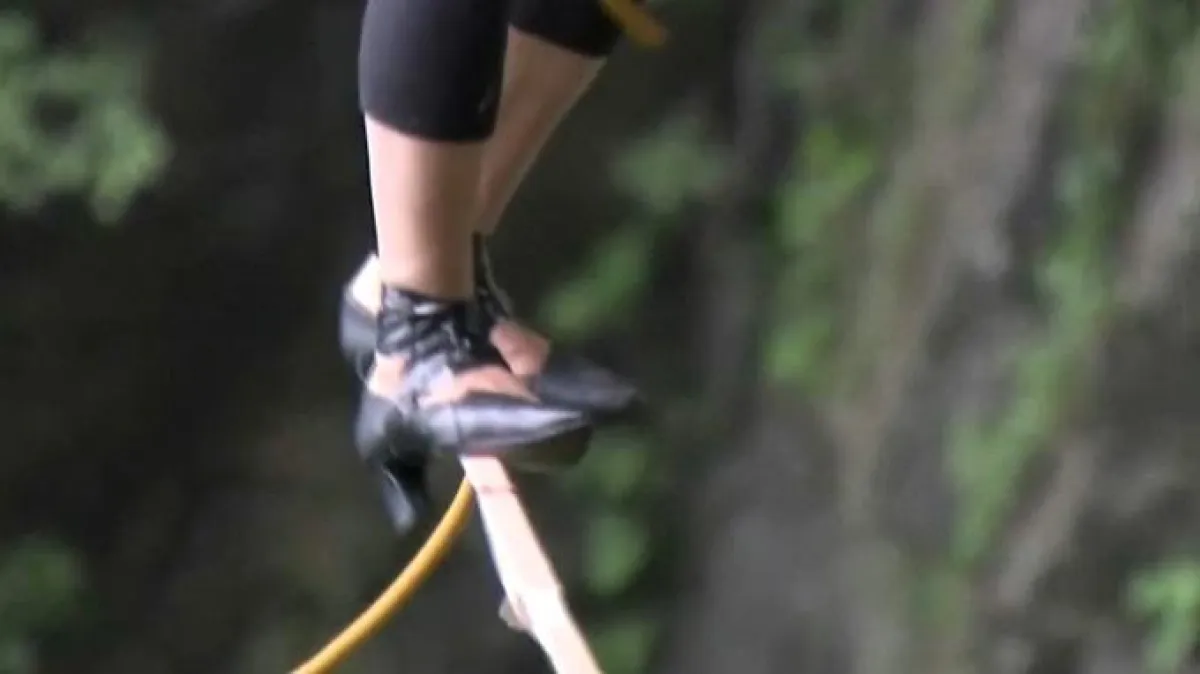 تواجه الكثير من النساء صعوبة كبيرة في السير وهن يرتدين الكعب العالي، وتتعرض بعضهن لآلام ومشاكل صحية متعددة، لكن كيف سيكون الحال عندما يسرن بالكعب العالي فوق حبل معلق بعرض 2 سم على ارتفاع أكثر من ألف متر؟
