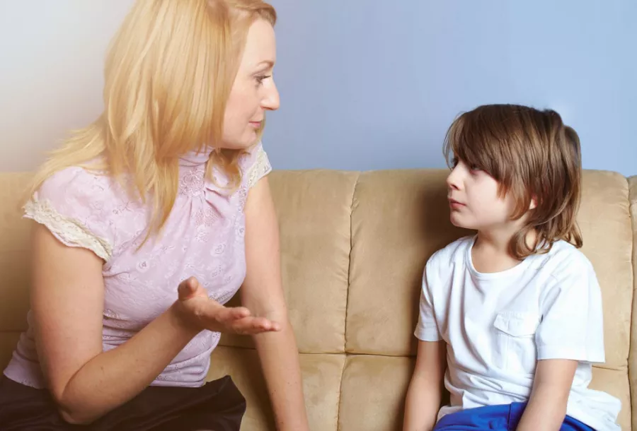 2. اجلسي على قدميك "الجثو" بموازاة الطفل، وانظري في عيني طفلك، عانقيه ثم اسأليه عمّا جرى معه أثناء غيابكما عن بعضكما طيلة اليوم