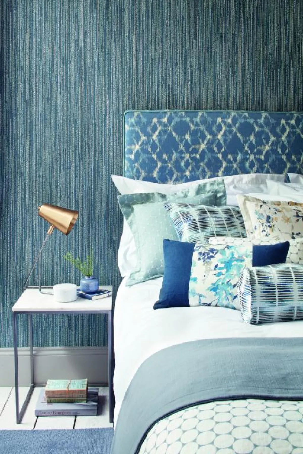 في غرف النوم، تبدو نقوش الطبيعة تجريديَّة الطابع مُحبَّبة، وهي تعكس طابعًا عفويًّا ومريحًا للعين، ما يُساعد في الاسترخاء، خصوصًا إذا كانت الألوان المستخدمة في الأقمشة من درجات الباستيل الهادئة.