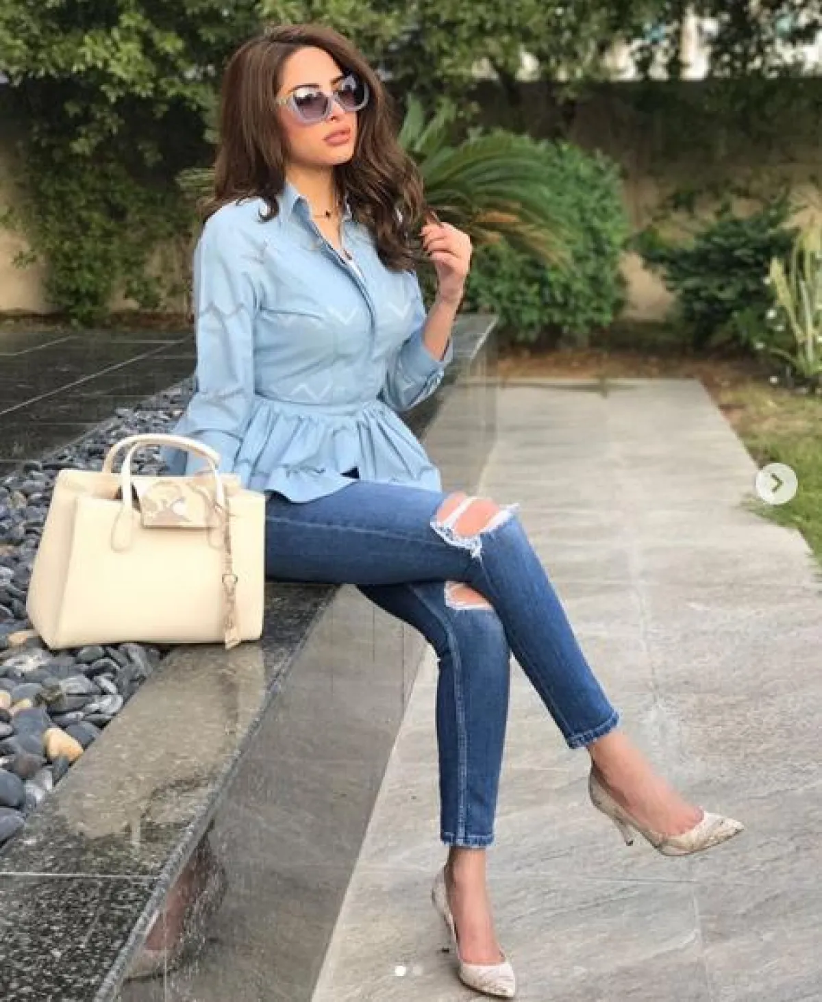 يمكنكِ أن تستوحي من إطلالة مدونة الموضة الخليجية فوز الفهد ببنطلون جينز أزرق فاتح ضيق، مع بلوزة أنيقة، وكعب عال، كإطلالة مناسبة لأوقات العمل والمناسبات الرسمية على حد سواء.