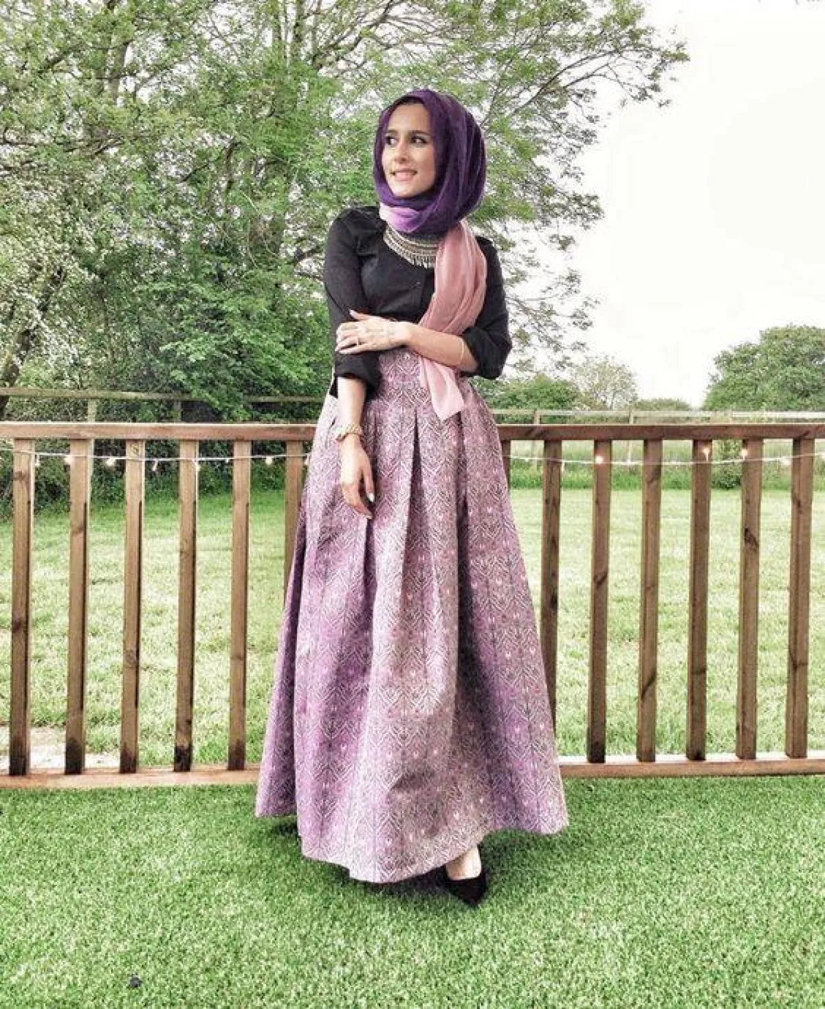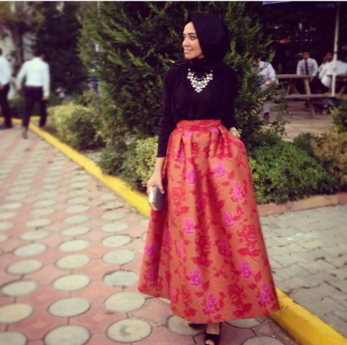 لفتنا أيضًا اختيار مدونة الموضة التركية هيولايلا أصلان تنورة مزركشة بالورود باللون الفوشي، لإطلالة صيفية كلها جاذبية وحيوية، مع بلوزة أنيقة باللون الأسود، زينتها بعقد كريستالي، وحجاب أسود.
