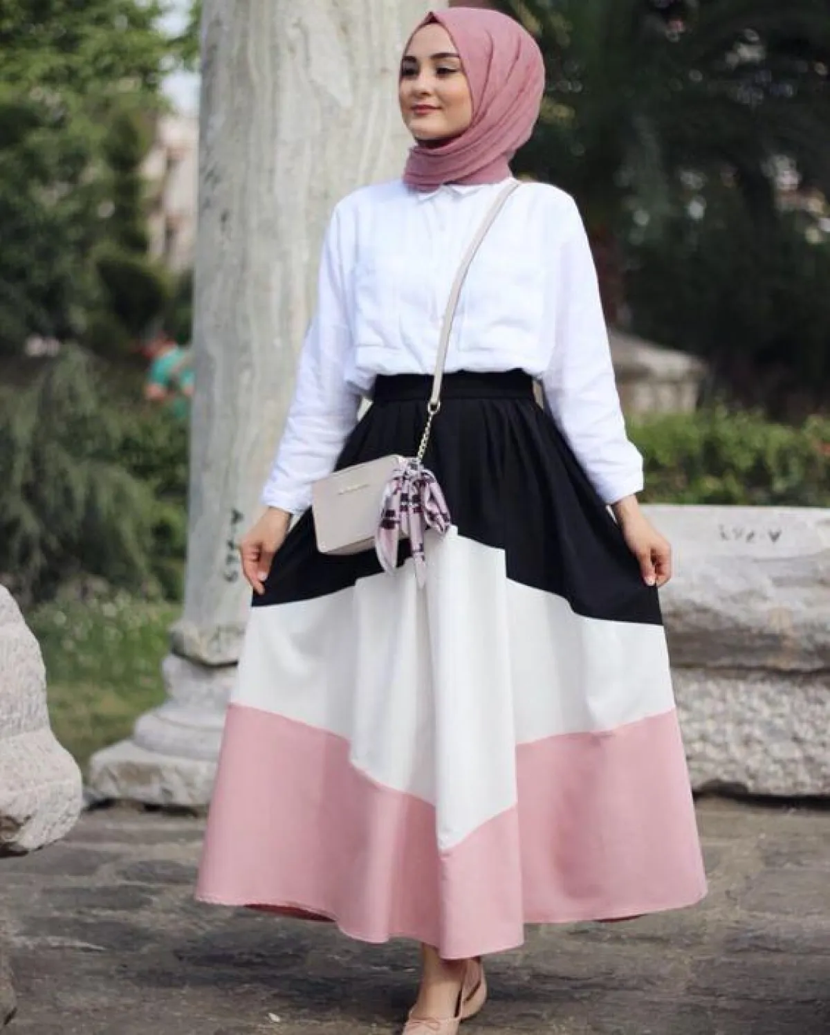 إذا كانت وجهتك عرسًا أو حفلًا رسميًا وتحتارين في اختيار الإطلالة المناسبة، فاختيار الفاشنيستا آسيا التنورة عالية الخصر بخامة التول المنفوش هو الأفضل. نسقيها مع البلوزة الكلاسيكية ولاتنسي أهمية الإكسسوارات، مع حجابك الأنيق باللون المناسب لبشرتكِ.