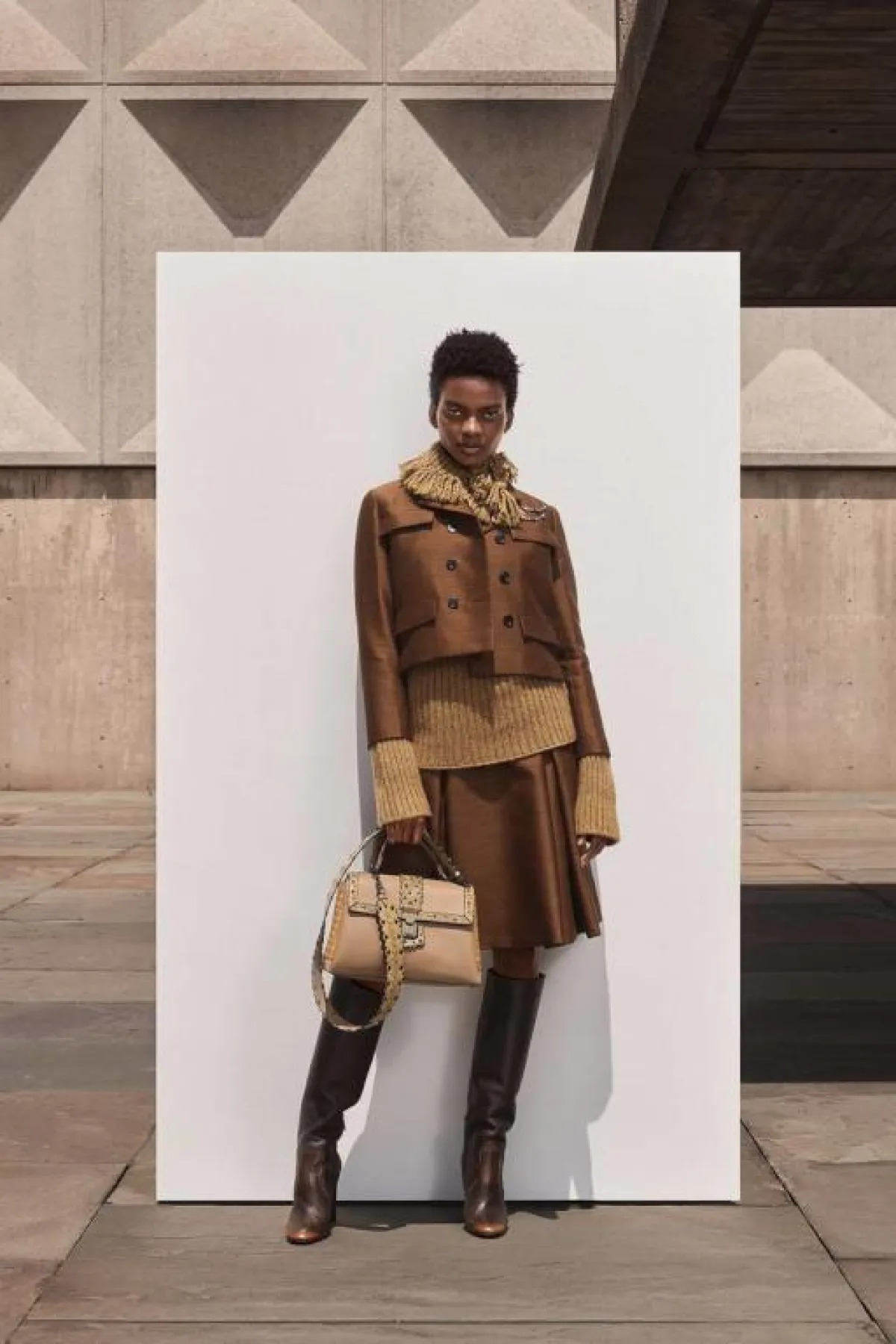 نفحات يابانية برزت في عروض أزياء الكروز الخاصة بدار Givenchy جيفينشي، مع الشنط البوكس بخامة الجلد، والألوان القاتمة، التي تتماشى مع المجموعة.
