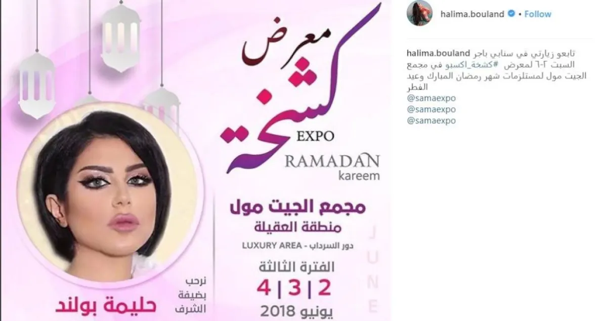 رغم اعلانها اعتزال الفن والاعلام بعد زواجها نشرت الفنانة والاعلامية حليمة بولند صورة عبر حسابها على انستقرام أكدت خلالها أنها ستحل ضيفة شرف على أحد المعارض التجارية خلال الأيام المقبلة وأضافت أنها ستنقل فعاليات تواجدها عبر حسابها الرسمي على تطبيق سناب شات وهو ما أثار جدلا خصوصا أن الاعلامية الكويتية كانت قد أعلنت اعتزالها رسميا في الرابع والعشرين من شهر مايو الماضي.