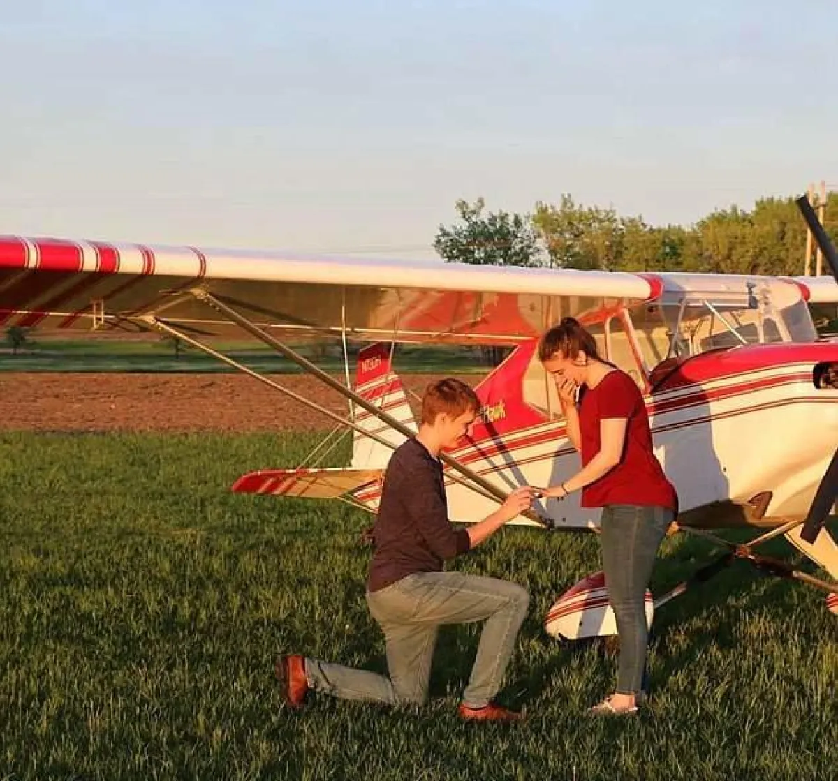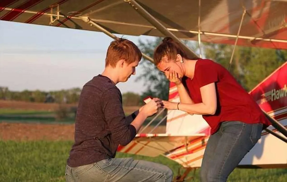 قرر شاب أمريكي أن يعرض الزواج على حبيبته بطريقة مبتكرة ومميزة جداً، فأخذها في رحلة جوية فوق حقل جده بعدما نقش عبارة ضخمة وسط الحقل.