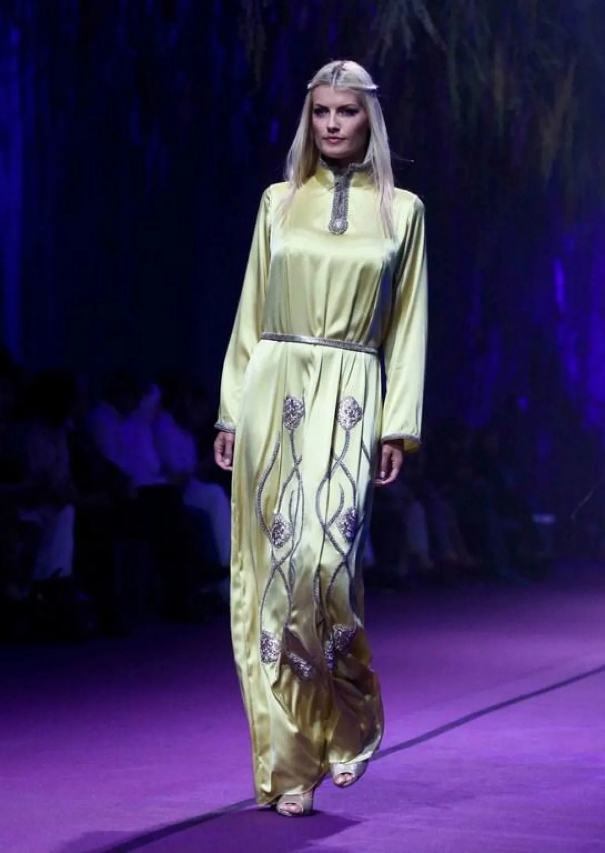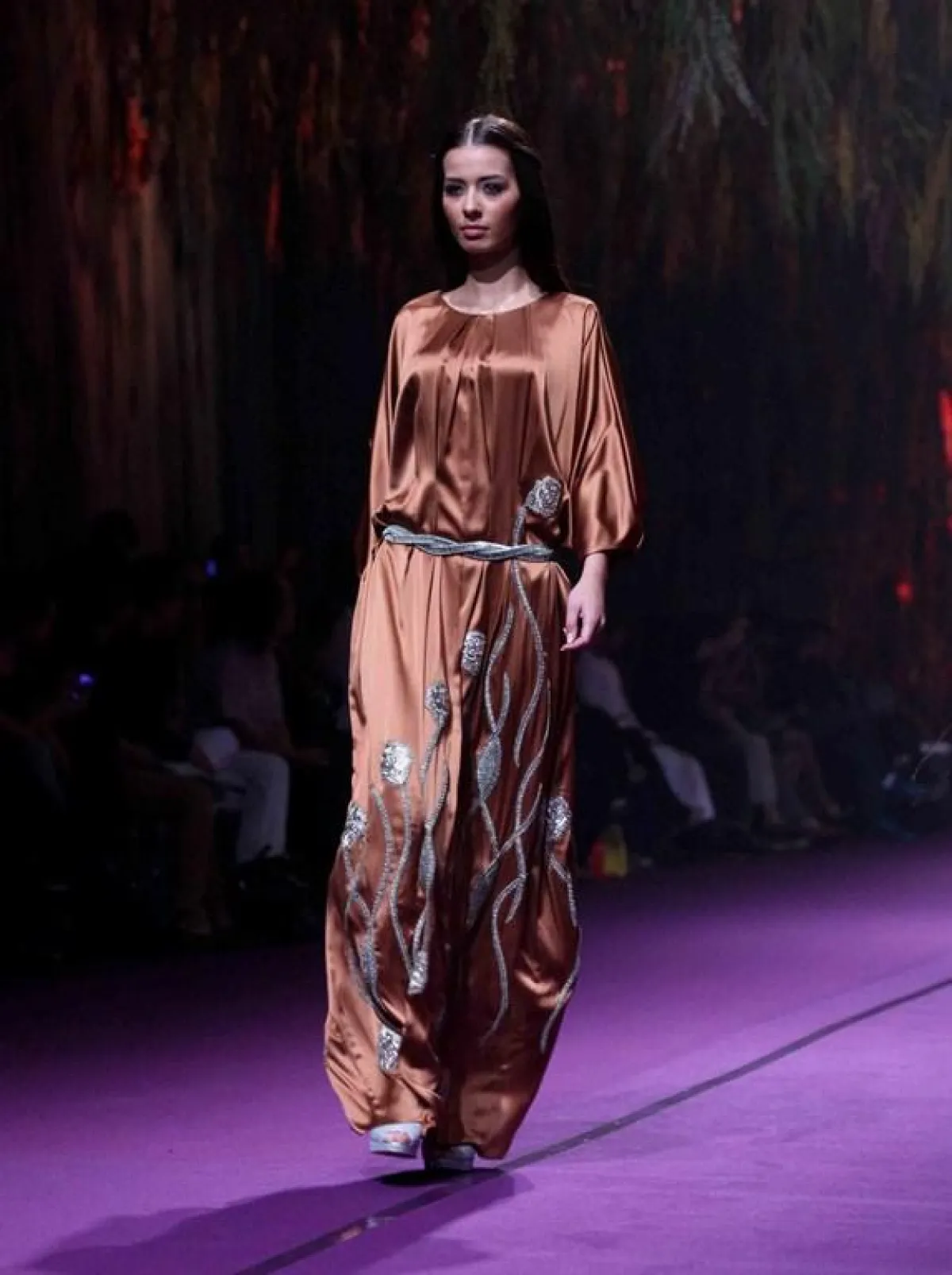 على وقع حفيف الشجر تهادت عارضات دوليّات على منصّة العرض، وقدّمن 50 تصميماً في عرض شعاره ورقة شجرة خضراء، تبرز فيها العروق الدقيقة التي من شأنها أن تُشكّل وريداً يُغذّي النبتة بالحياة، وتُشبه بذلك خيوط التطريز التي عملت عليها المصمّمة بتأنٍّ؛ في إشارة منها إلى أنّ التفاصيل شريان حيويّ في أيّ عمل تمنح الجمال أنفاسه وهويته، وهذا ما تُسمّيه زرينة "الولادة الصامتة".