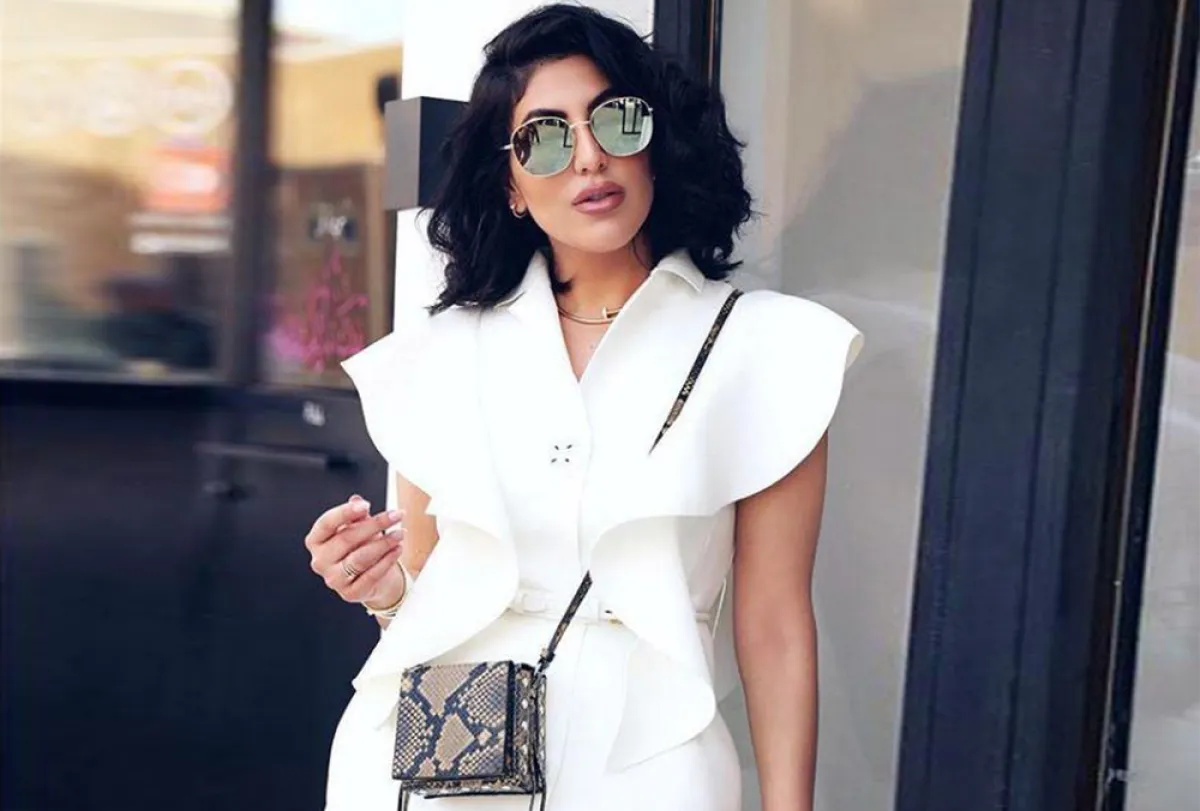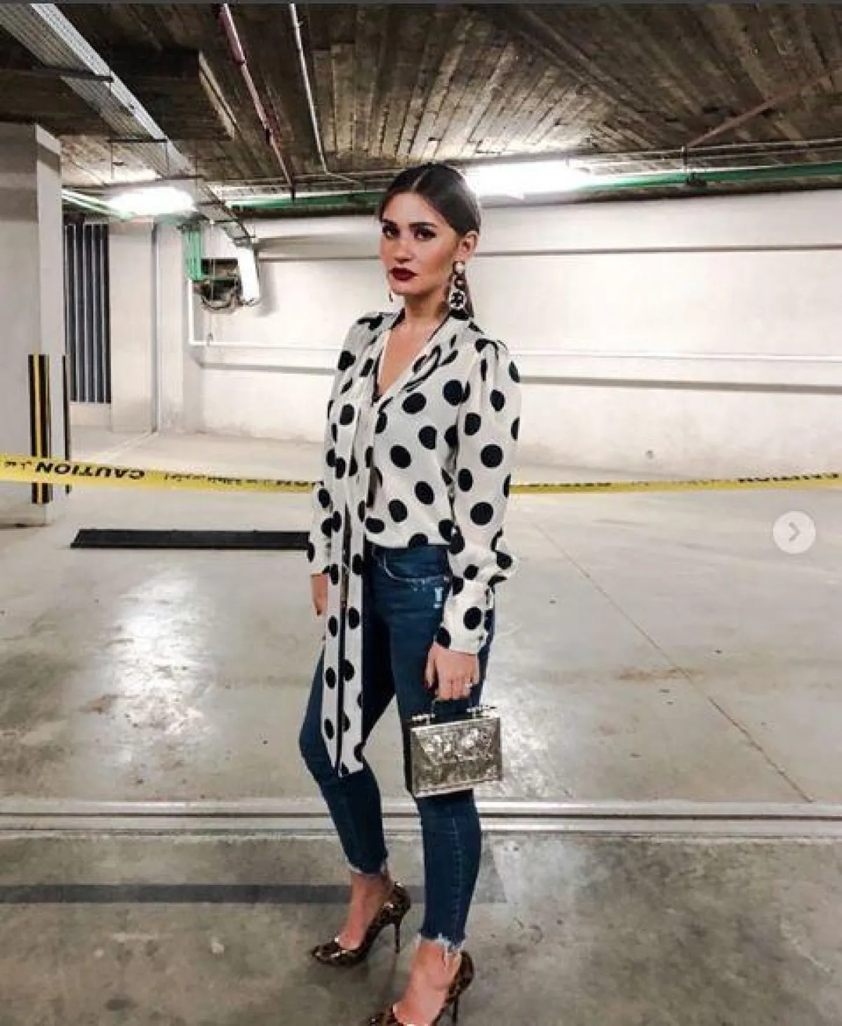 اختارتها كذلك بنقشة جلد الثعبان الفاشنيستا دانا الطويرش، وارتدتها بطريقة الكروس، مع البلوزة البيضاء، ذات الكشاكش عند الأكتاف، كما لفتتنا إطلالتها الجديدة باللون اللبني بالجلد المزركش، على طراز حقيبة الظهر Mini Bag Back.