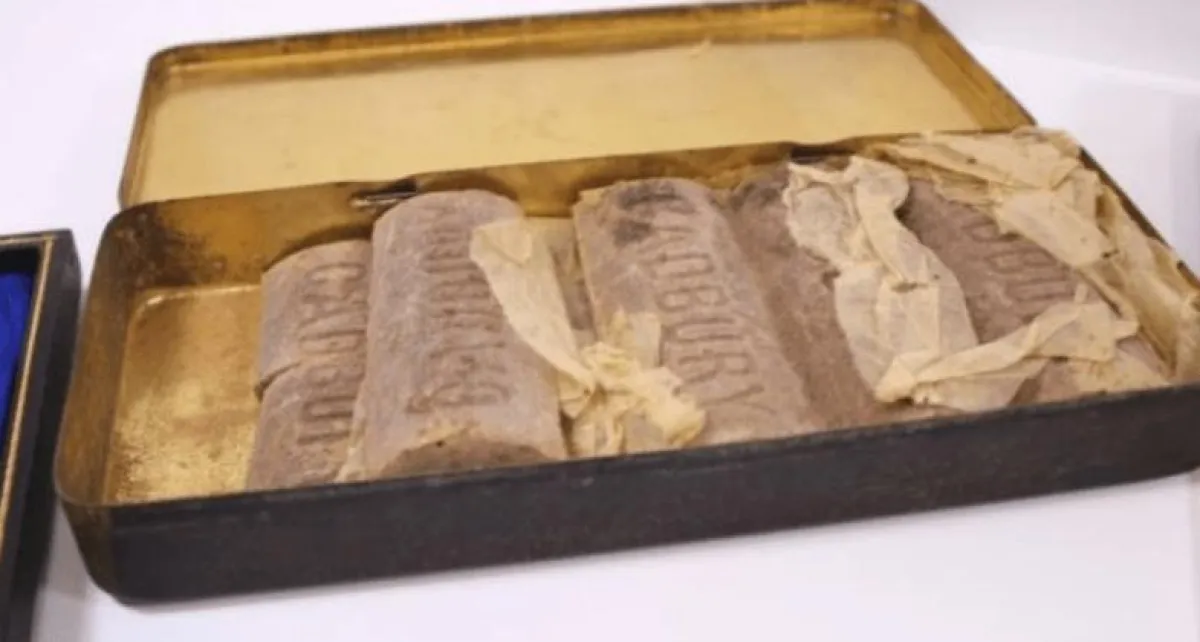 عُثر مؤخراً على تسع قطع من الشوكولاتة عمرها 103 أعوام في علبة معدنية تعود إلى أحد الجنود خلال الحرب العالمية الأولى.