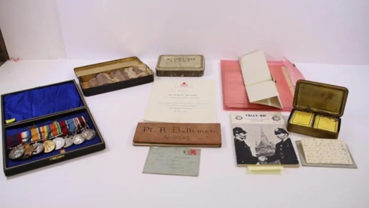 وستباع المجموعة الكاملة، بما في ذلك الشوكولاتة والسجائر والميداليات والرسائل وغيرها من الأشياء الأخرى، ومن المتوقع أن تحقق سعراً يفوق 2000 جنيه إسترليني.