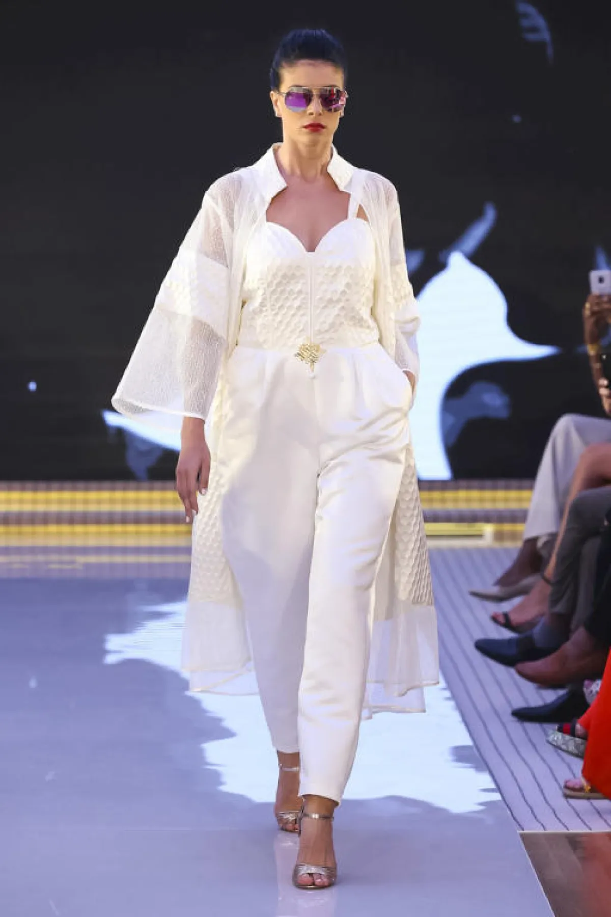 ولأن الجمبسوت من قطع الأزياء البارزة في عالم الموضة، فيمكنك اختيار موديل يناسبك، ونسقي معه السترة الطويلة والمفتوحة من الأمام، بحيث يبرز تصميم الجمبسوت وفي نفس الوقت تحافظي على إطلالتك العصرية، مثل الإطلالة باللون الأبيض من ArAm Designs.
