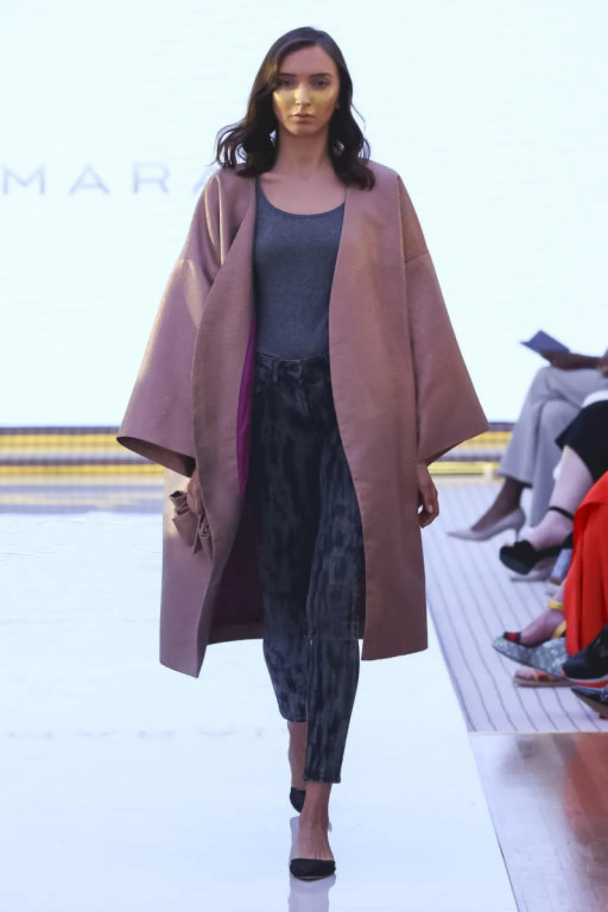 ولا يشترط أن تكون السترة المفتوحة طويلة جداً، بل يمكن أن تكون متوسطة الطول وتعتمديها مع أزياء تحتية طويلة سواء سروال أو تنورة مثل إطلالة العارضة لدى ماركة Asmaraia.
