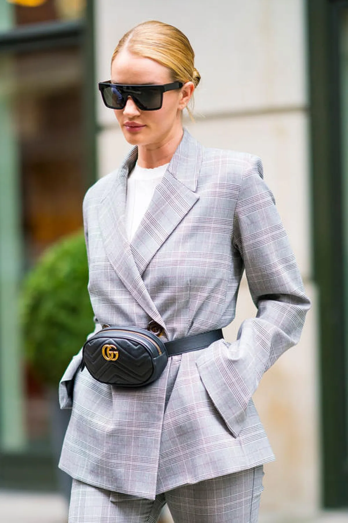 بدت إطلالة العارضة Rosie Huntington-Whiteley روزي وايتلي لافتة، بحقيبة الحزام من غوتشي Gucci، وبلايزر بنقشة الكاروهات الأنيقة.