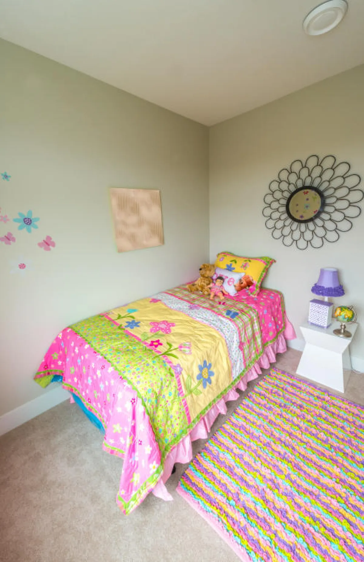 1. السرير من القطع الأهمِّ في أي غرفة نوم، ولا بدَّ أن يكون الفراش طبيًّا نظرًا إلى أنَّ شاغلته في طور النموِّ وعظامها ليِّنة، مع اختيار وسائد مريحة له ومفرش ذي ألوان أنثوية، مع تعطيره باستمرار.