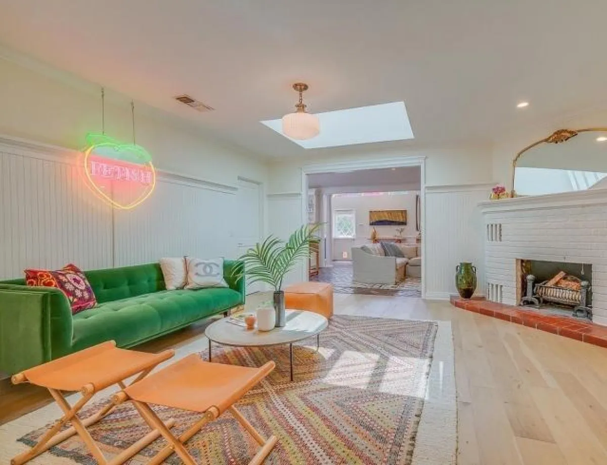 من جهةٍ ثانيةٍ، تحلو غرفة المعيشة الثانية بديكورها الشبابي نظرًا لحضور الألوان المشرقة، وطريقة توزيع الأثاث بطريقة مريحة للنظر والحركة.