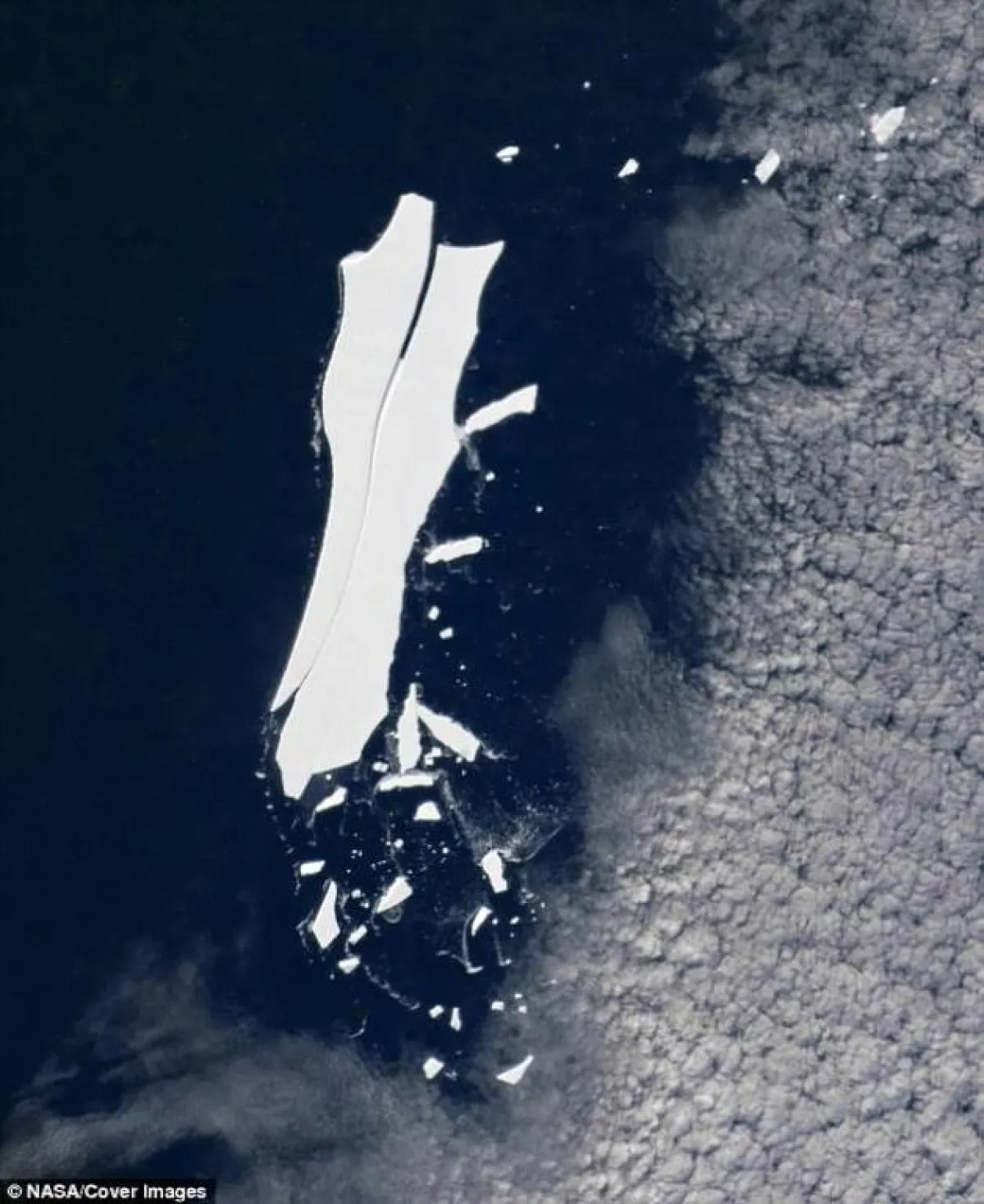 قضى كل هذا الوقت عائمًا في المياه المتجمدة حول أنتاركتيكا، ومنذ انفصال الجبل عن القارة القطبية المتجمدة، إلا أنه في العام الأخير تغير مسار الرياح مما أدى إلى أن يذهب الجبل إلى طريق الخط الاستوائي، ومنذ ذلك الحين ضل يتفكك الجبل الجليدي إلى قطع أصغر حجمًا بحجم جزر بالي.