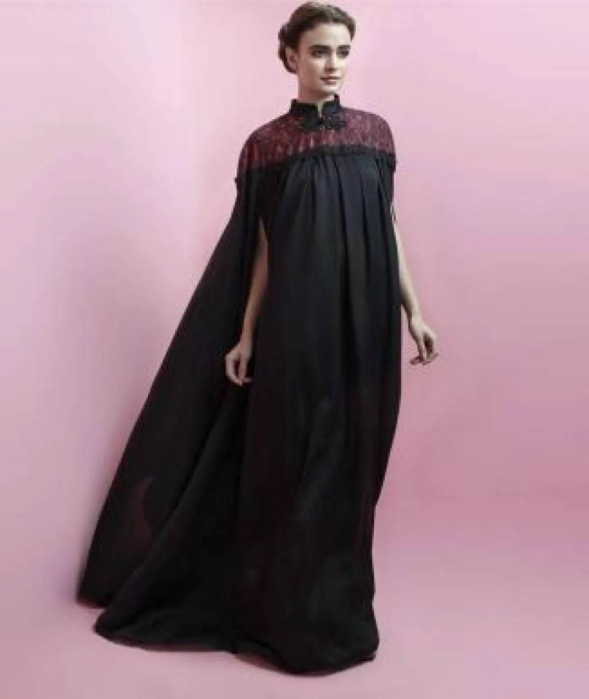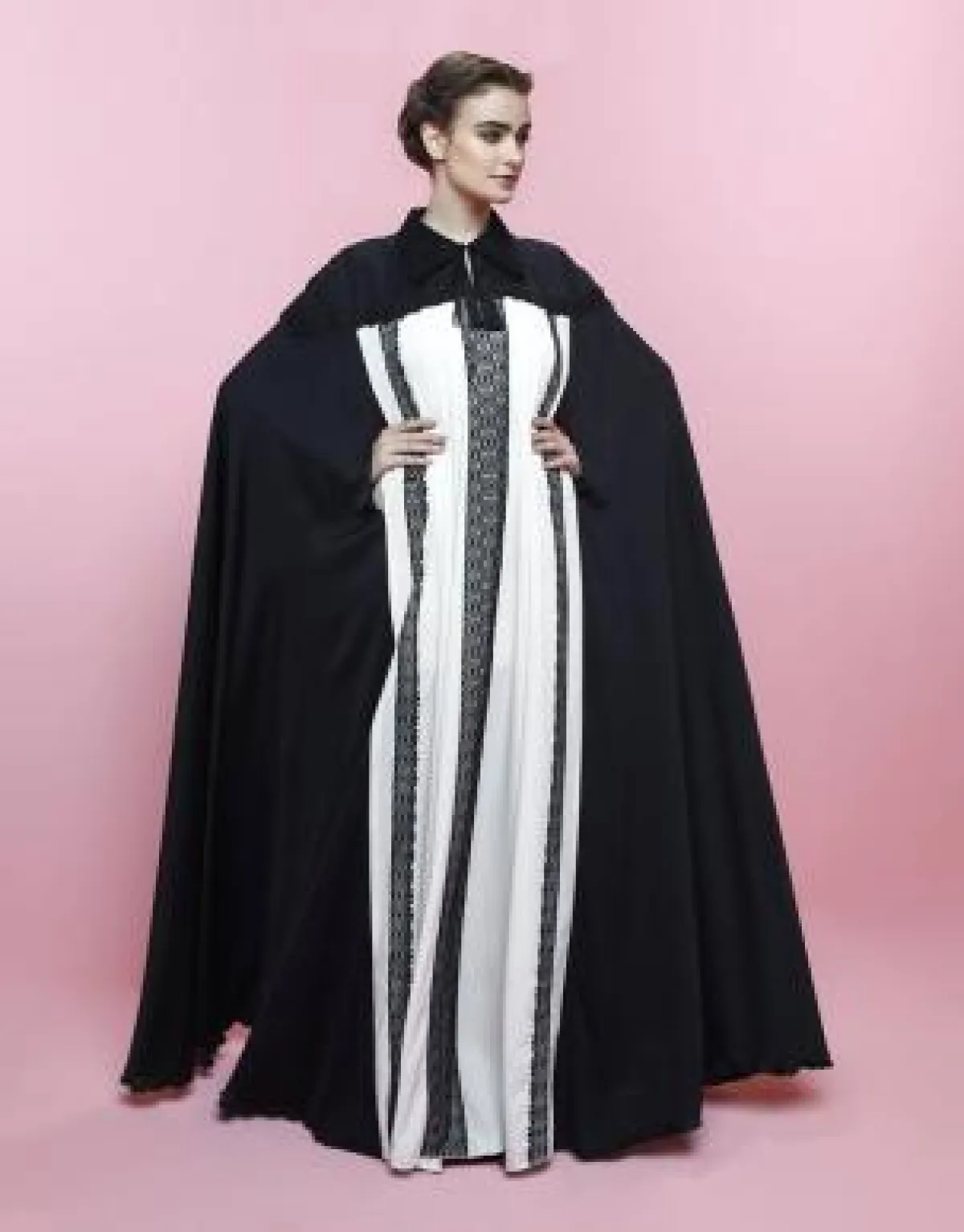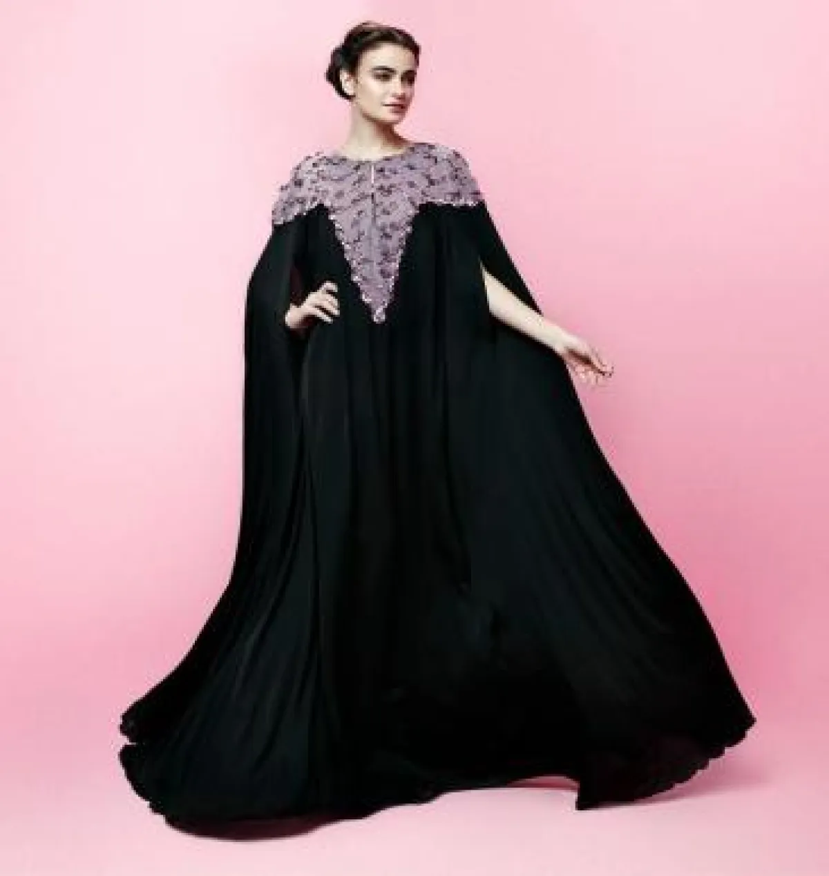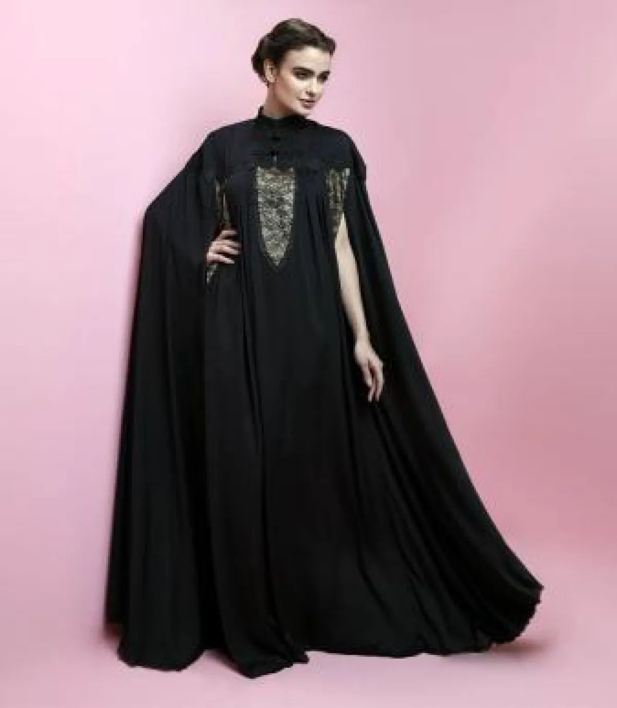 أجمل التصاميم دائماً هي ما يحتوي على تفاصيل دقيقة ومتقنة. وقد لفتنا استخدام الدانتيل في لمسات بسيطة على الأكتاف، وفي تفاصيل العباءة، حيث أضاف لها شيئاً من الرقيّ والتميّز.